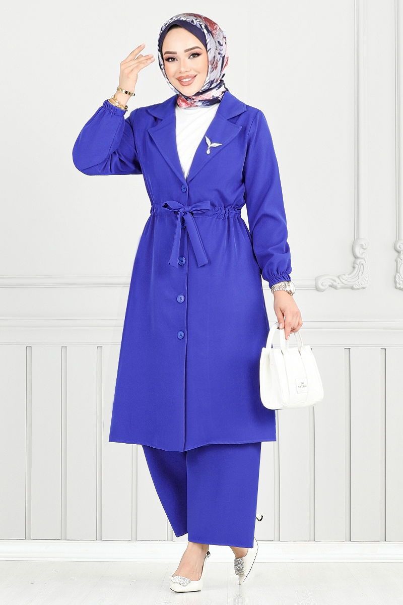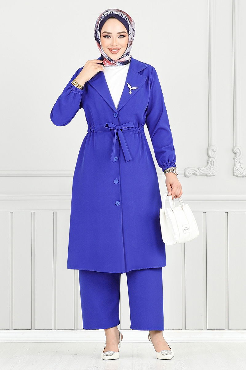 Ürün Özelliği : Yeni sezon tesettür moda ürünüdür. Beli bağcıklıdır. Ürün Kruvaze yakadır. Ürün Önden düğmelidir. Yırtmaçlıdır.. Astarsızdır. Pantolon beli lastiklidir. Manşet lastiklidir. Konsept fotoğraf çekimlerinden dolayı üründe ton farklılığı olabilir.