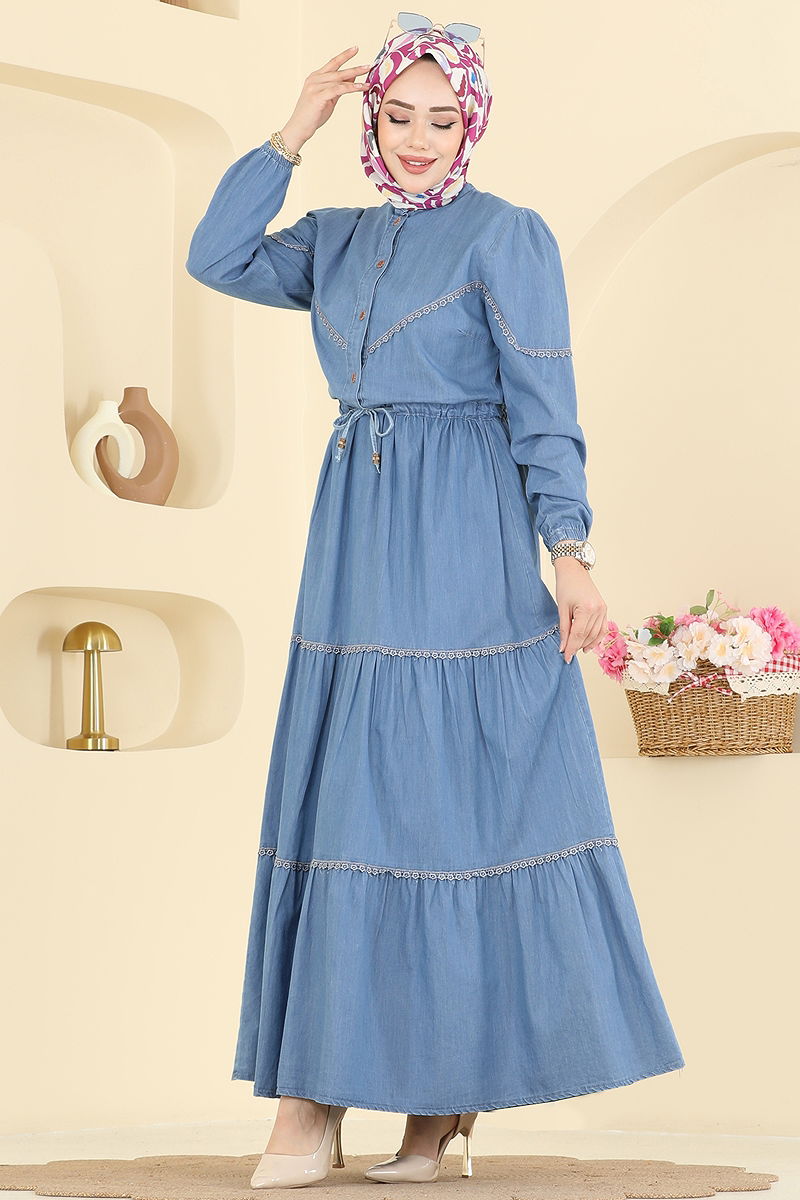 Modern ve şık tasarımıyla dikkat çeken Beli Tünelli Kot Elbise, tesettür giyimde yeni bir soluk getiriyor. Her mevsim rahatlıkla kullanabileceğiniz bu elbise, 30 derecede hassas yıkama özelliği ile uzun ömürlüdür. Dayanıklı kot kumaşı ve rahat kesimi ile günlük kullanımda konfor sunar. Yarım hakim yaka ve ön yüzündeki yarım düğmeleri ile pratik bir kullanım sağlar. Beli bağcıklı tasarımı sayesinde farklı bedenlere uyum sağlar, manşetleri lastikli olduğundan kollarınızda rahat bir fit sunar. Stil sahibi hanımların vazgeçilmezi olacak!