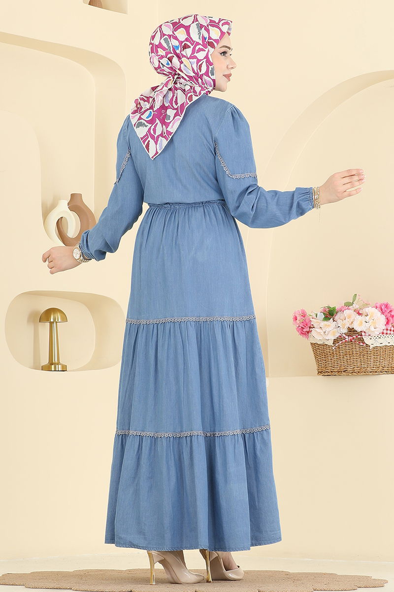 Beli Tünelli Kot Elbise Açık Kot