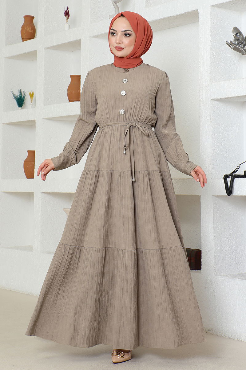 Ürün Özelliği :Yeni sezon tesettür moda ürünüdür. (Astarsızdır.)Bisiklet yakadır.Sırttan kullanılabilir bir düğmesi bulunmaktadır.Beli lastiklidir.Kemer ürüne dahildir, isteğe bağlı kullanılmayabilir.Düğmeler aksesuardır.Ürün renginde konsept çekimlerinden dolayı ton farklılığı olabilir.