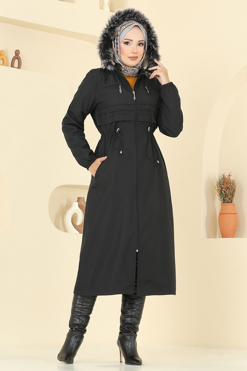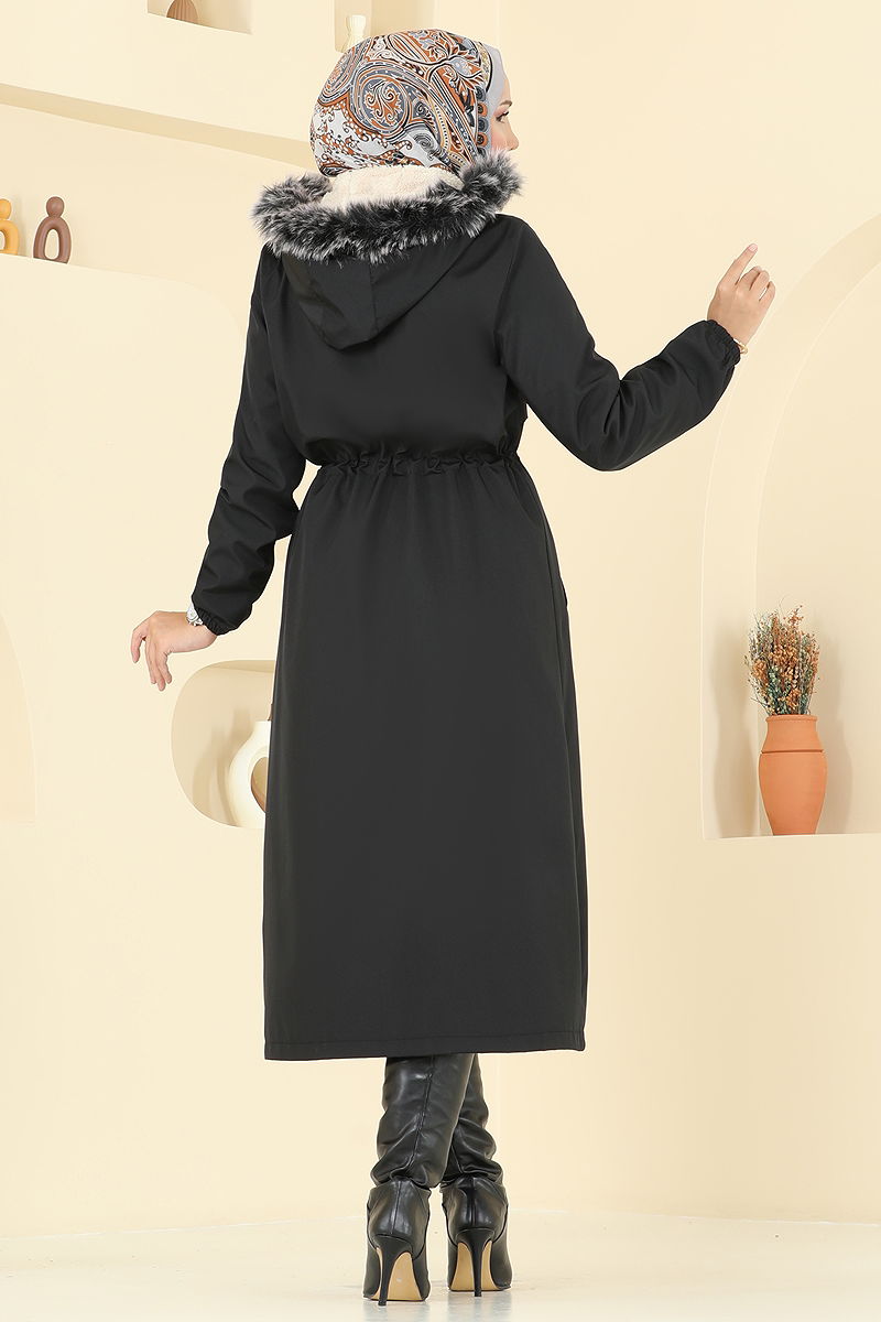 Beli Tünelli Kürklü Kaban Siyah