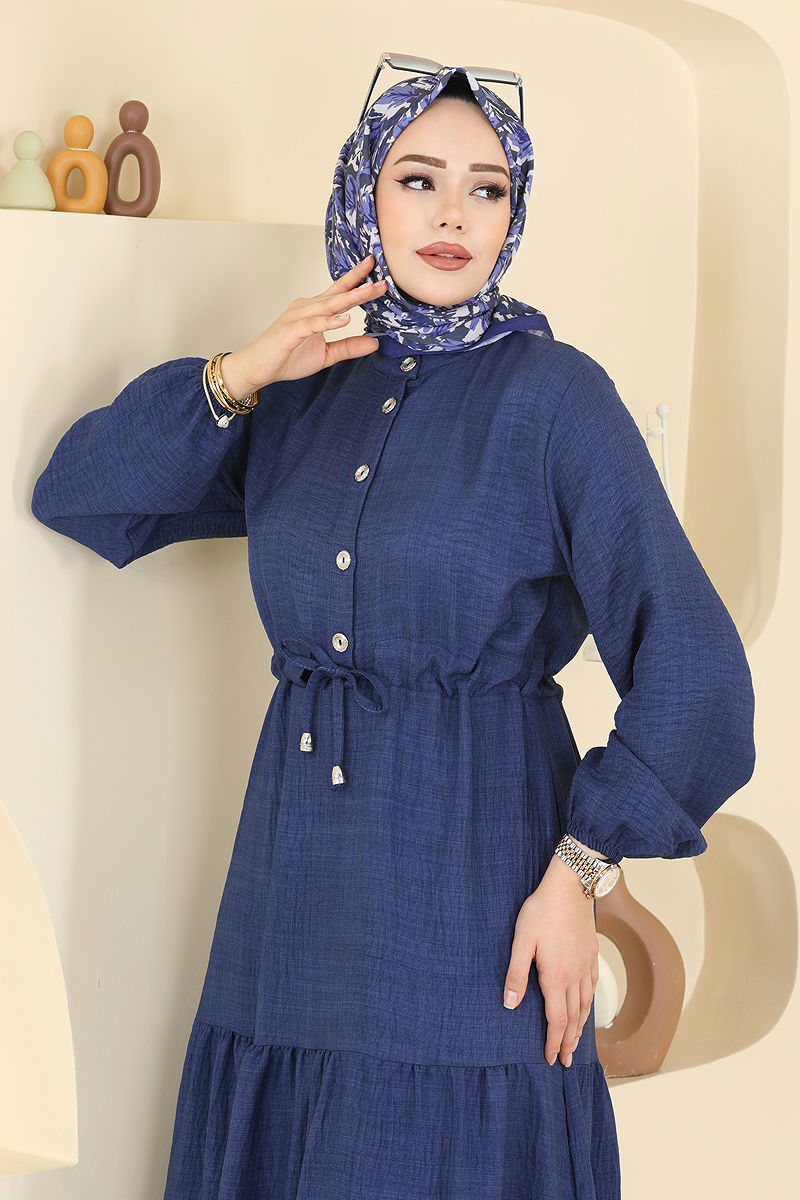 Beli Tünelli Sofia Elbise, sofistike ve zarif bir tasarıma sahip tesettür elbise modelidir. Dört Mevsim boyunca konforunuzu sağlayacak şekilde tasarlanmıştır. Özel Sofia Keten kumaşı ile üretilmiş olan bu elbise, hafif ve nefes alabilen yapısıyla dikkat çeker. 30 derecede hassas yıkama imkanı sunar ve yarım hakim yaka tasarımı ile şıklığına şıklık katar. Elbisenin ön kısmında yer alan yarım düğmeler sayesinde kullanımı pratikleştirilmiştir. Beli bağcıklı tasarımı sayesinde farklı vücut tiplerine uyum sağlar, manşetleri lastiklidir ve astarsızdır. Kutup yıldızı gibi parlayın ve her ortamda zarafetinizi konuşturun.