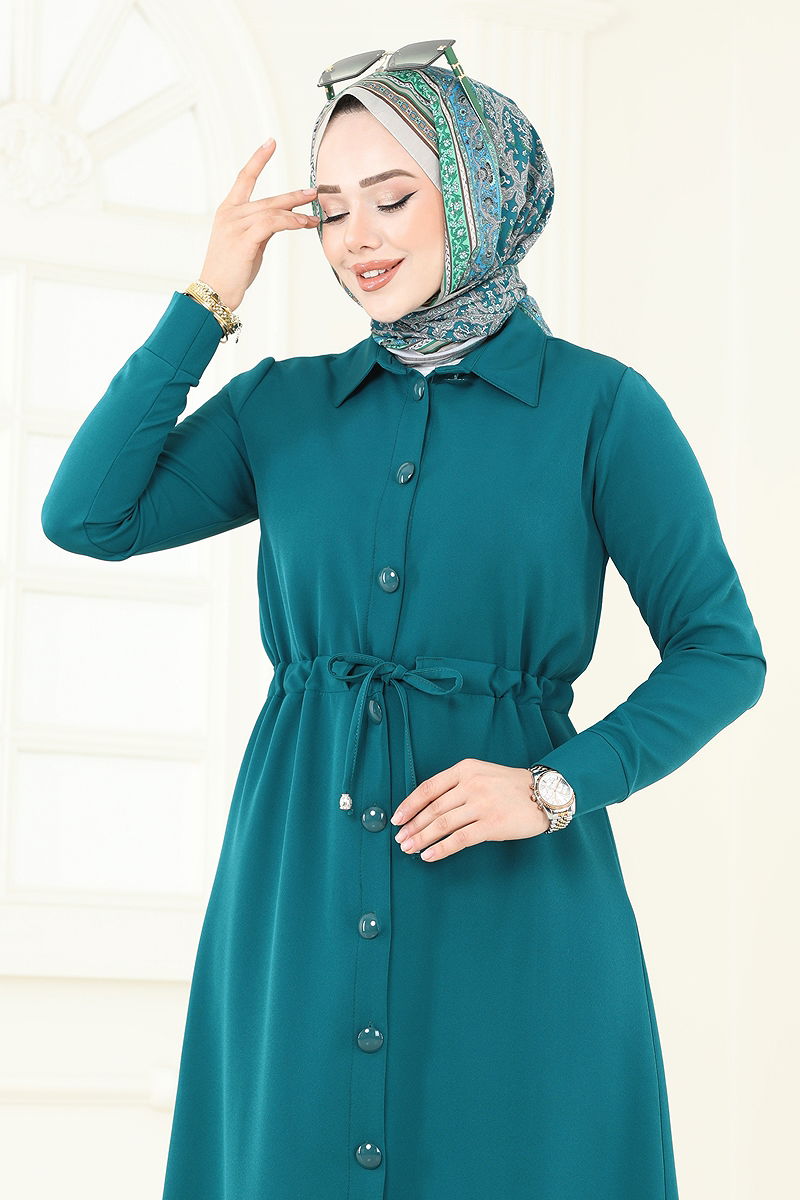 Ürün Özelliği : Yeni sezon tesettür moda ürünüdür. Beli bağcıklıdır. Ürün Gömlek yakadır. Ürün Önden düğmelidir. Astarsızdır. Bluz ürüne dahil değildir. Ürün kullanım amacını göstermek için bluz ile örnek kombin yapılmıştır. Pantolon beli lastiklidir. Konsept fotoğraf çekimlerinden dolayı üründe ton farklılığı olabilir.