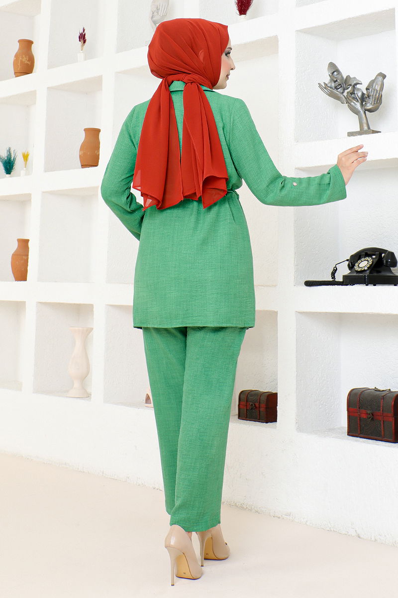 Beli Tünelli Tesettür Takım KTN1016-M Yeşil