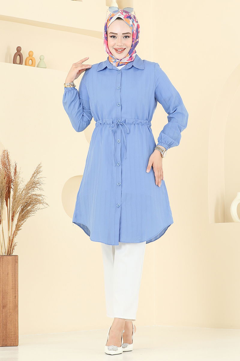Ürün Özelliği : Yeni sezon tesettür moda ürünüdür. Beli bağcıklıdır. Ürün Gömlek yakadır. Ürün Önden düğmelidir. Astarsızdır. Manşet lastiklidir. Konsept fotoğraf çekimlerinden dolayı üründe ton farklılığı olabilir.