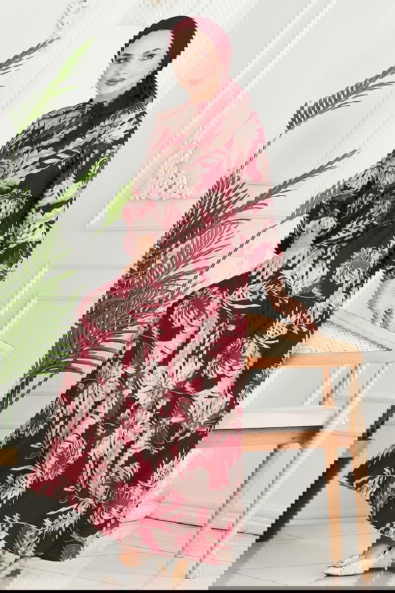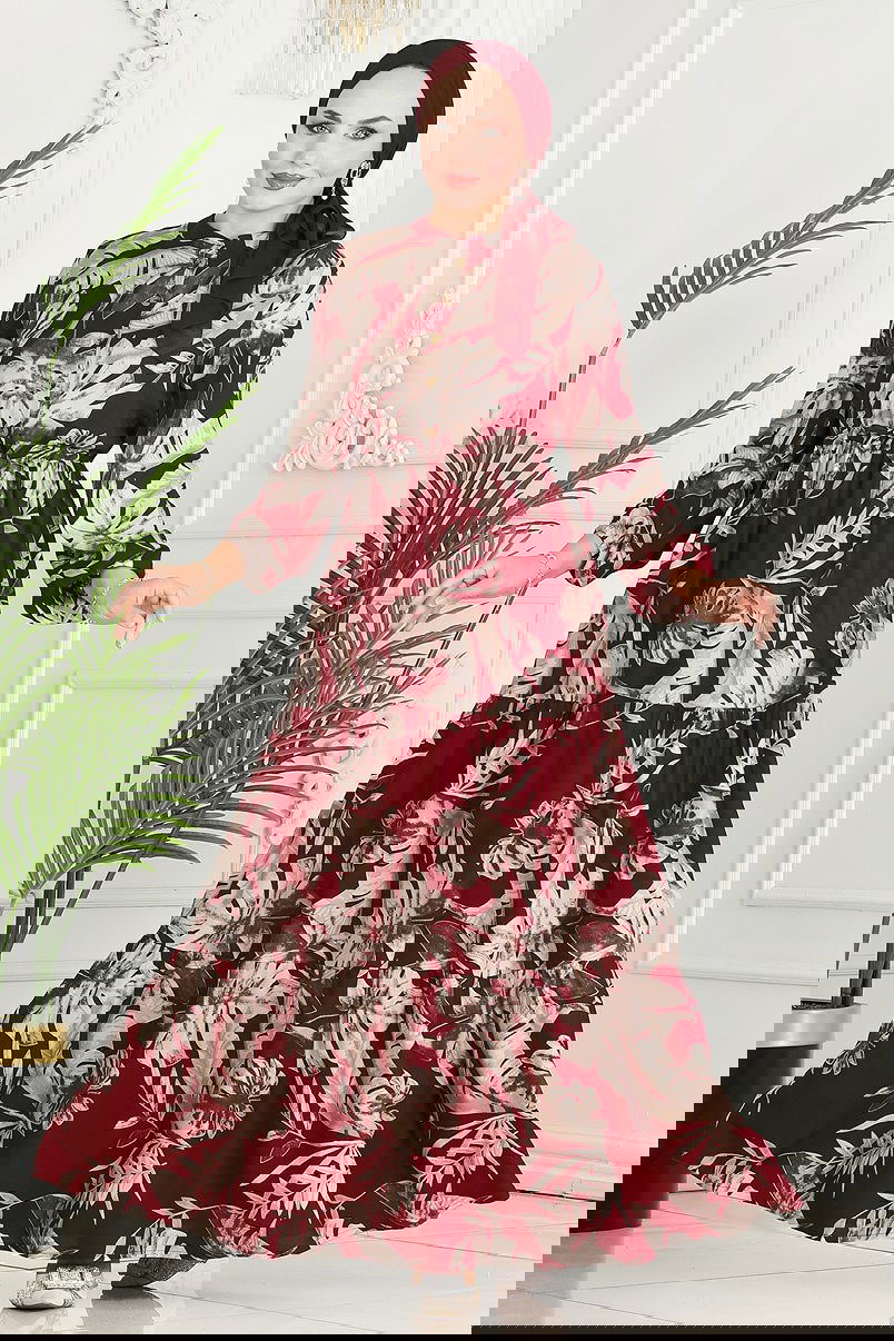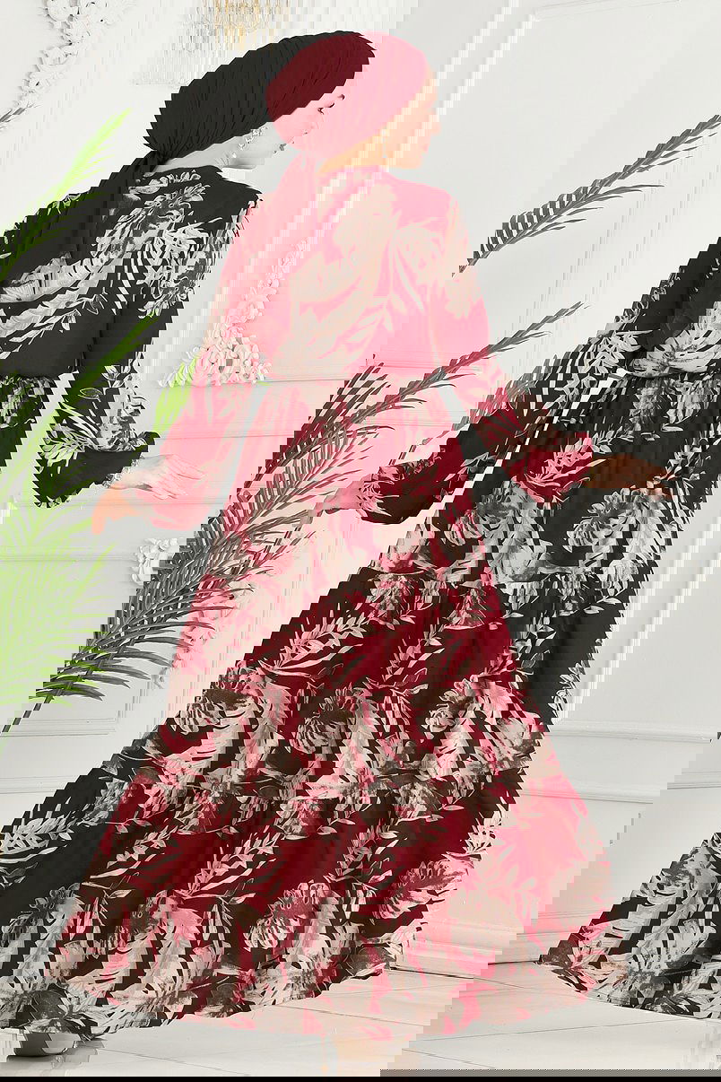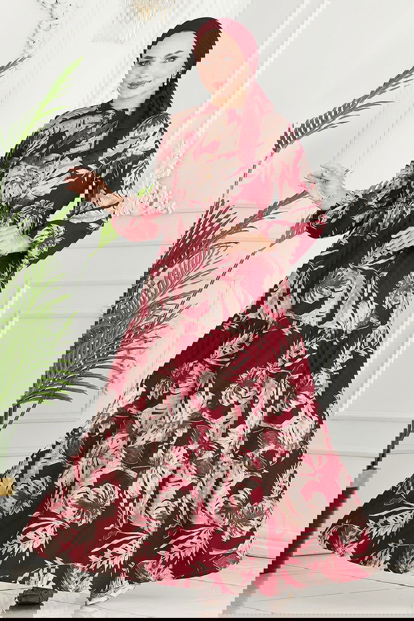 Beli Tünelli Viskon Elbise Bordo