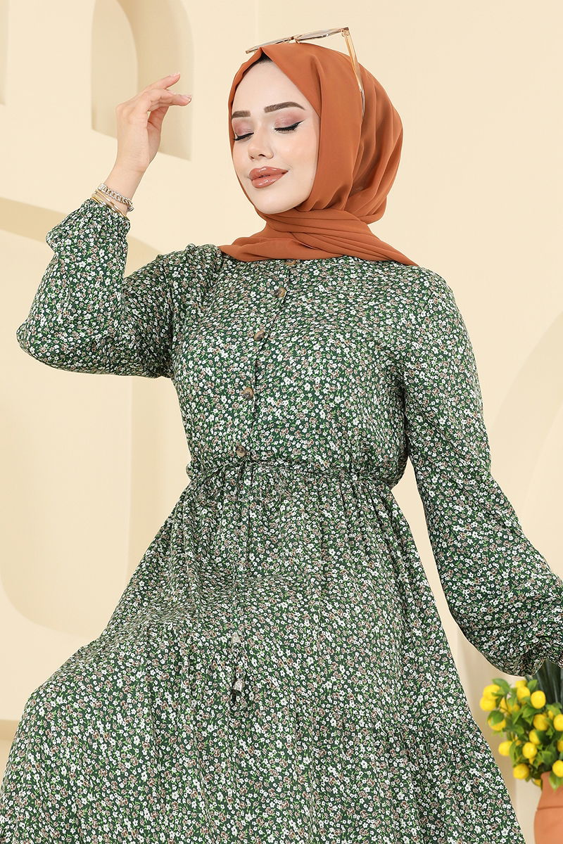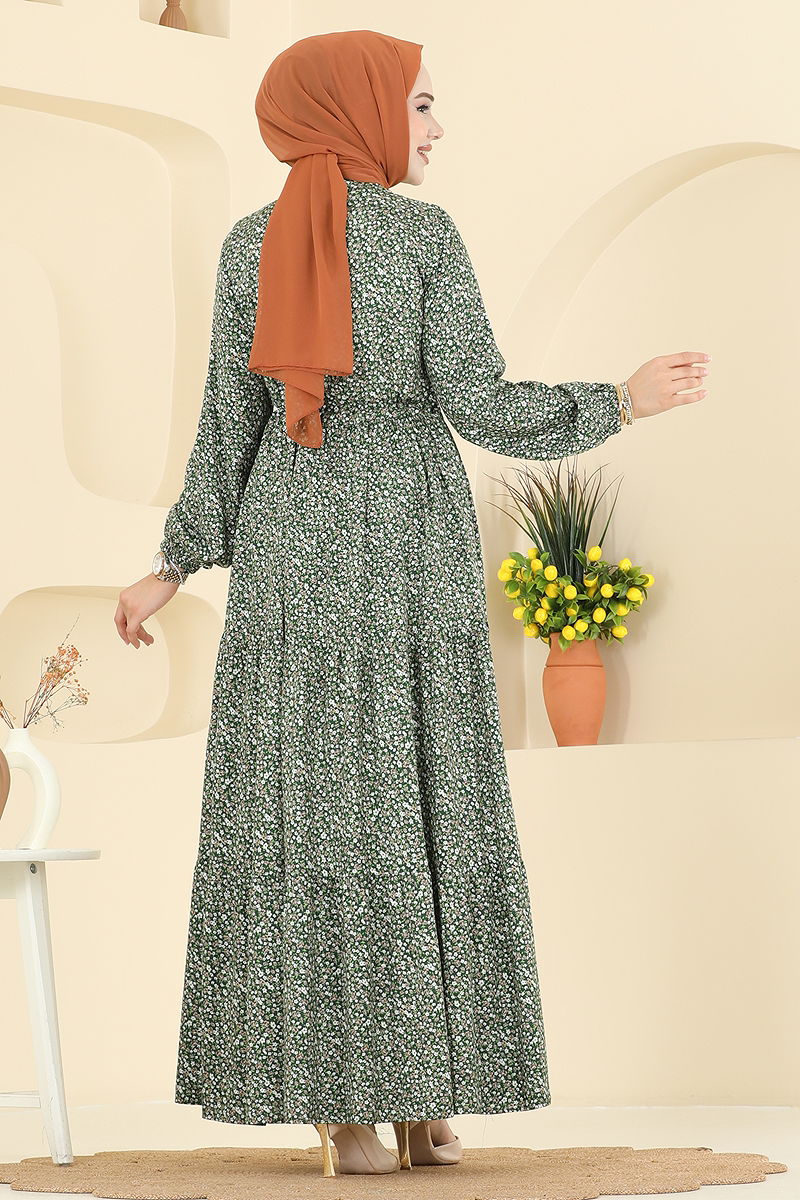 Beli Tünelli Viskon Elbise 7136ERK1158 Haki