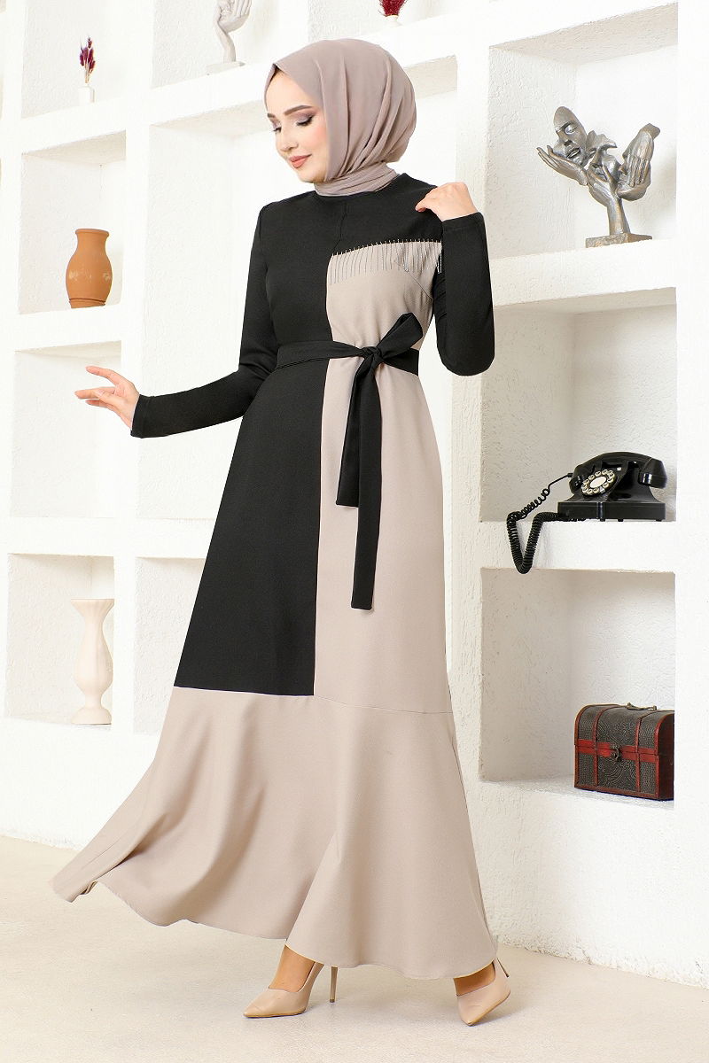 فستان حجاب بحزام أسود
