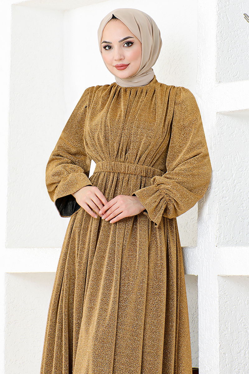 Belted Silvery Tulle Evening Dress is an evening dress model specially designed for hijab clothing lovers. This evening dress, which is suitable for four seasons, is recommended to be dry cleaned only. It is made of first class silvery tulle fabric and is lined. The product is offered with a necklace and belt and can be used optionally. Anthracite, Burgundy, Gold, Silver, Silver, Purple, Petrol, Emerald color options and 38, 40, 42, 44, 46 size options are offered to our customers.