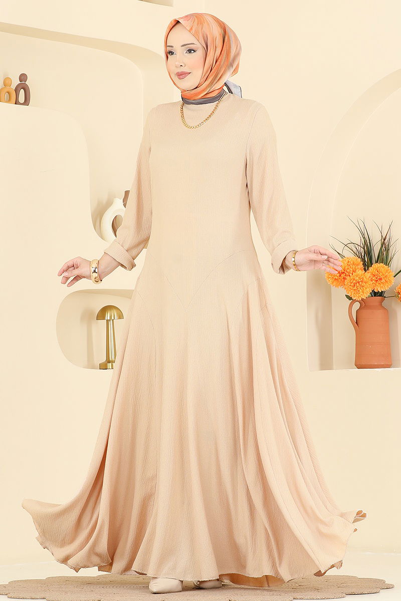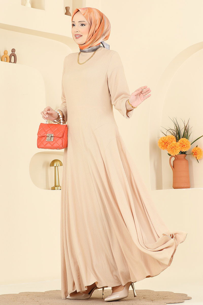 Bisiklet Yaka Bürümcük Elbise 7132ERK1158 Bej