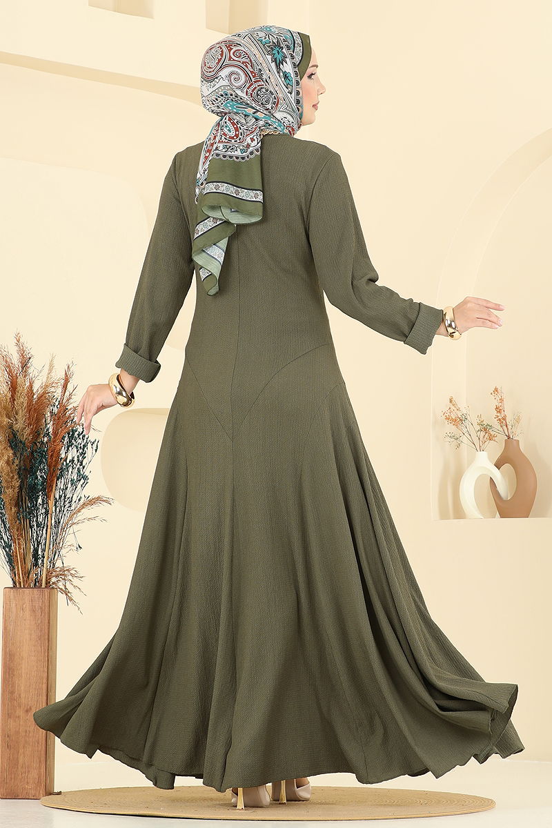 Bisiklet Yaka Bürümcük Elbise 7132ERK1158 Haki