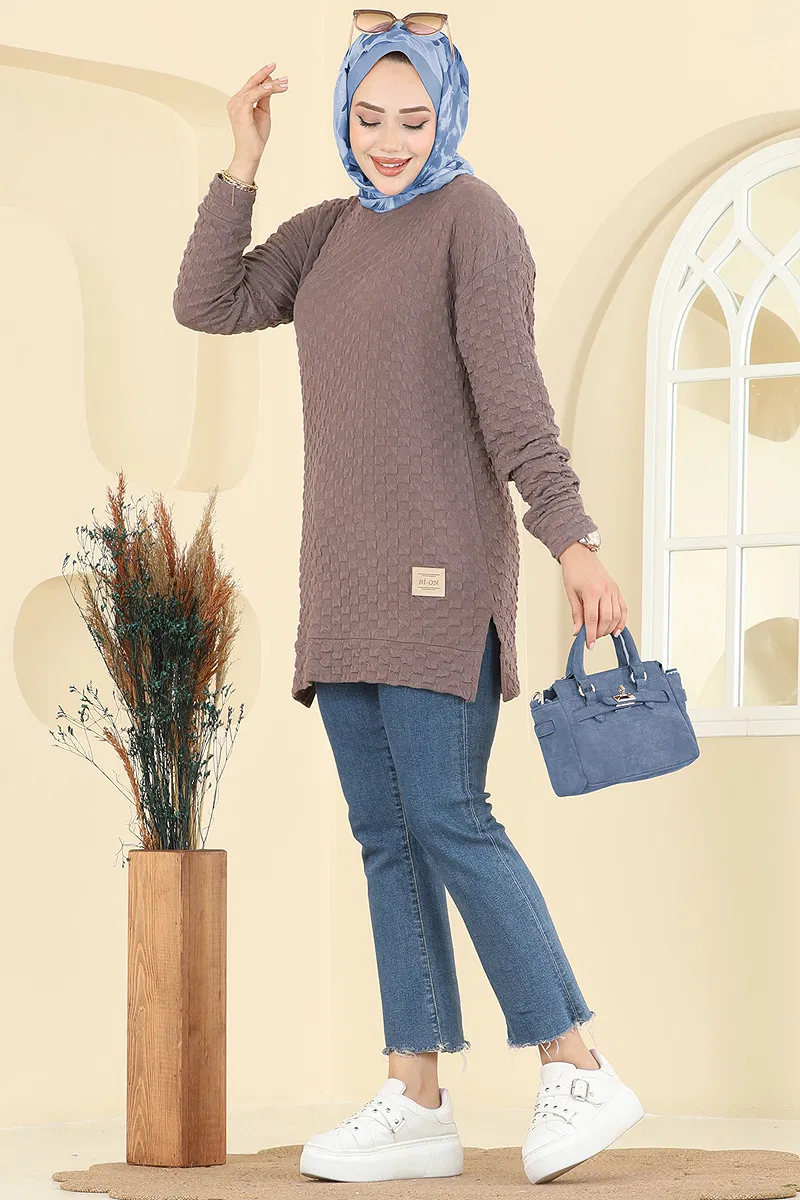Bisiklet Yaka Bürümcük Tunik 185BO429 Pudra Vizyon