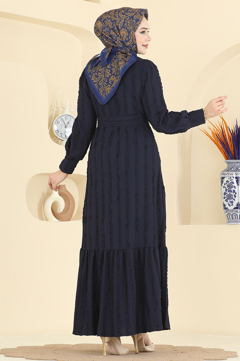 Detaylarıyla öne çıkan Bisiklet Yaka Detaylı Elbise, tesettür giyim için ideal bir seçenektir. Dört mevsim rahatlıkla kullanılabilir. Bisiklet yaka ve sırttan düğmeli tasarımıyla dikkat çekerken, astarsız yapısı ile konfor sunar. 30 derecede hassas yıkamaya uygun bu elbise, kemer detayı ile de stil sahibi bir görünüm kazandırır. Kemer, elbisenin kendi tasarımına dahil olup, isteğe bağlı olarak çıkarılabilir. Ürün 38 beden örneği ile sunulmuştur.