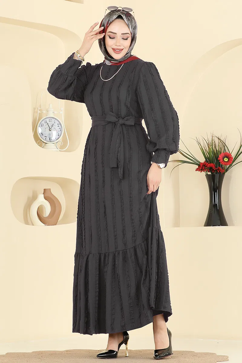 Detaylarıyla öne çıkan Bisiklet Yaka Detaylı Elbise, tesettür giyim için ideal bir seçenektir. Dört mevsim rahatlıkla kullanılabilir. Bisiklet yaka ve sırttan düğmeli tasarımıyla dikkat çekerken, astarsız yapısı ile konfor sunar. 30 derecede hassas yıkamaya uygun bu elbise, kemer detayı ile de stil sahibi bir görünüm kazandırır. Kemer, elbisenin kendi tasarımına dahil olup, isteğe bağlı olarak çıkarılabilir. Ürün 38 beden örneği ile sunulmuştur.