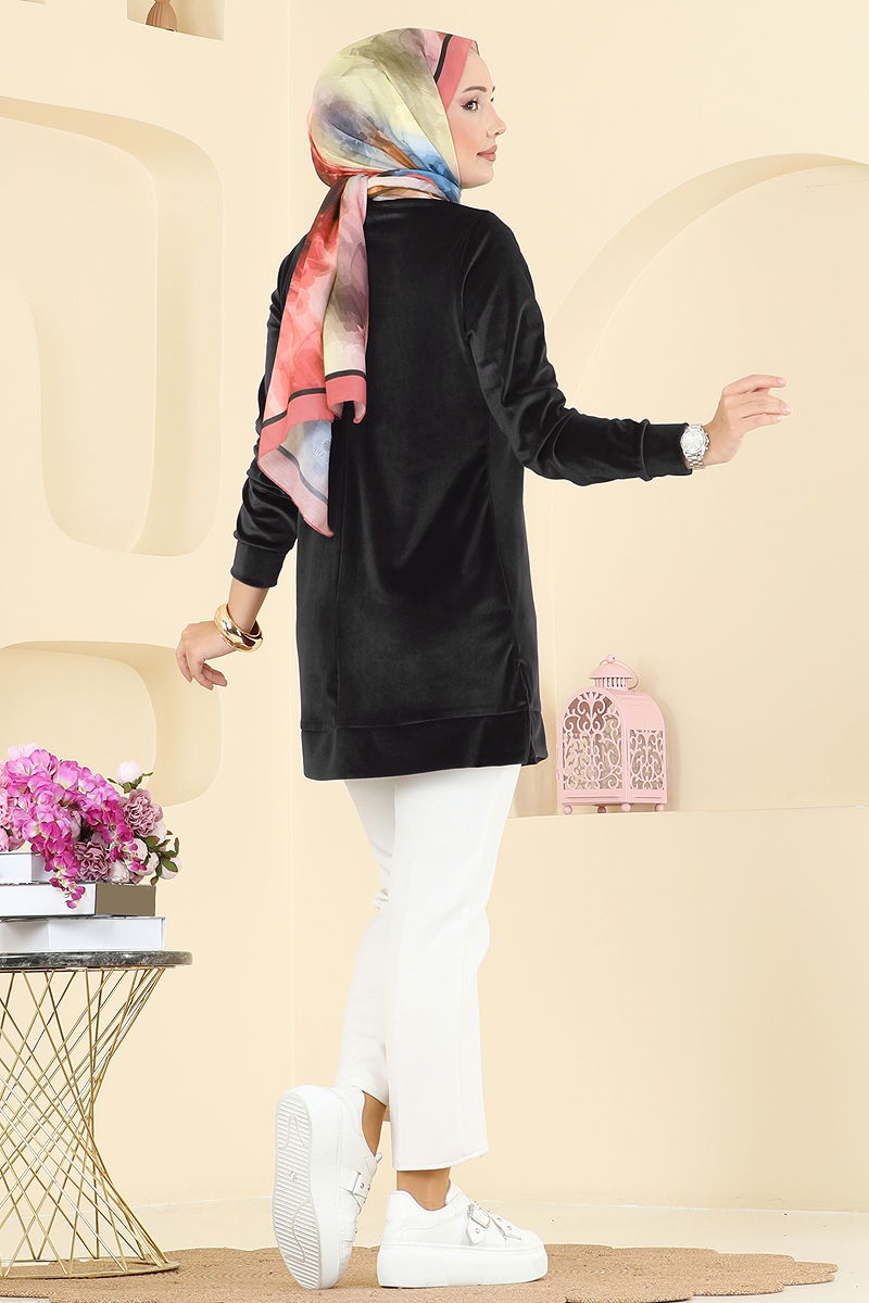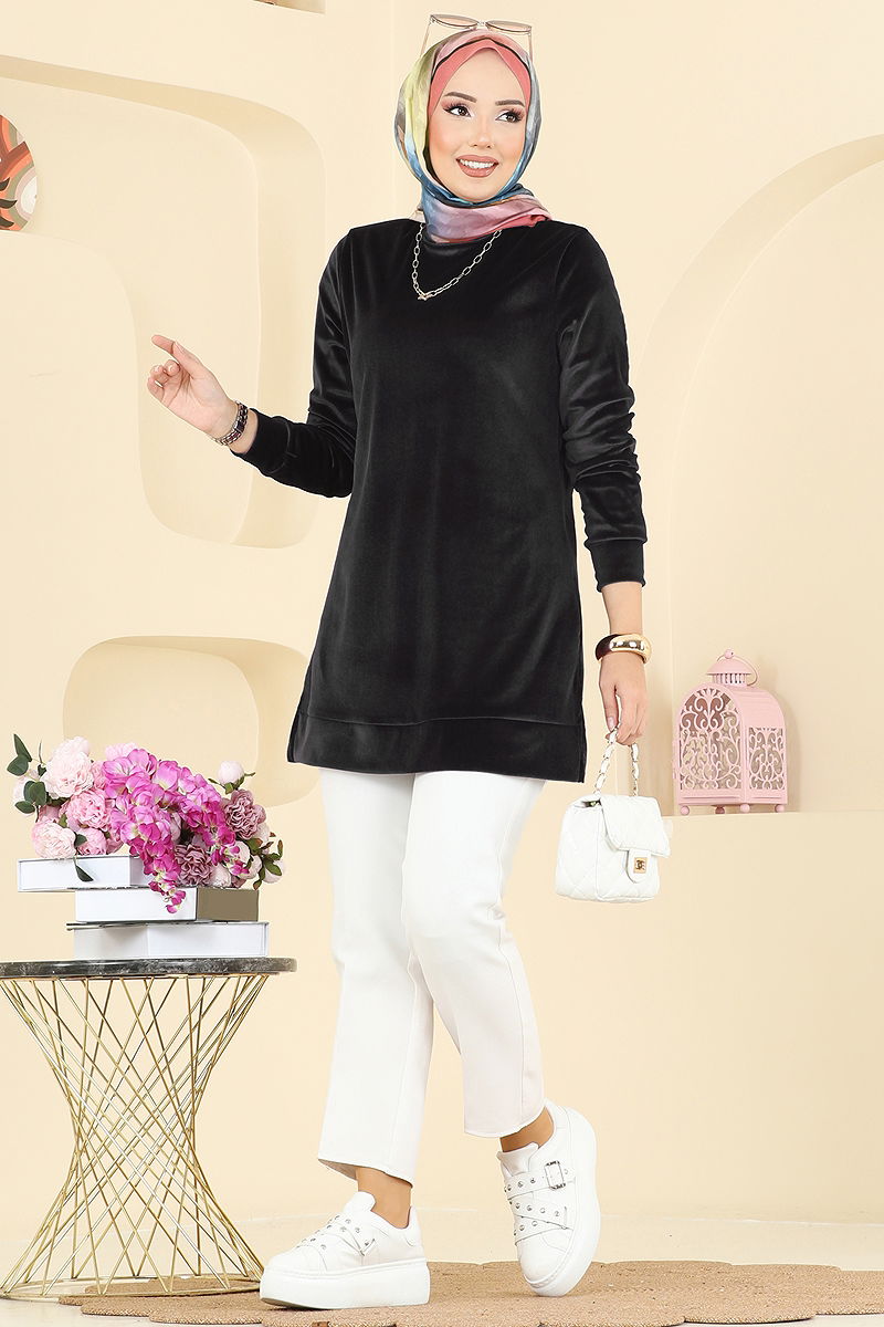 Bisiklet Yaka Kadife Tunik ASM2833 Siyah
