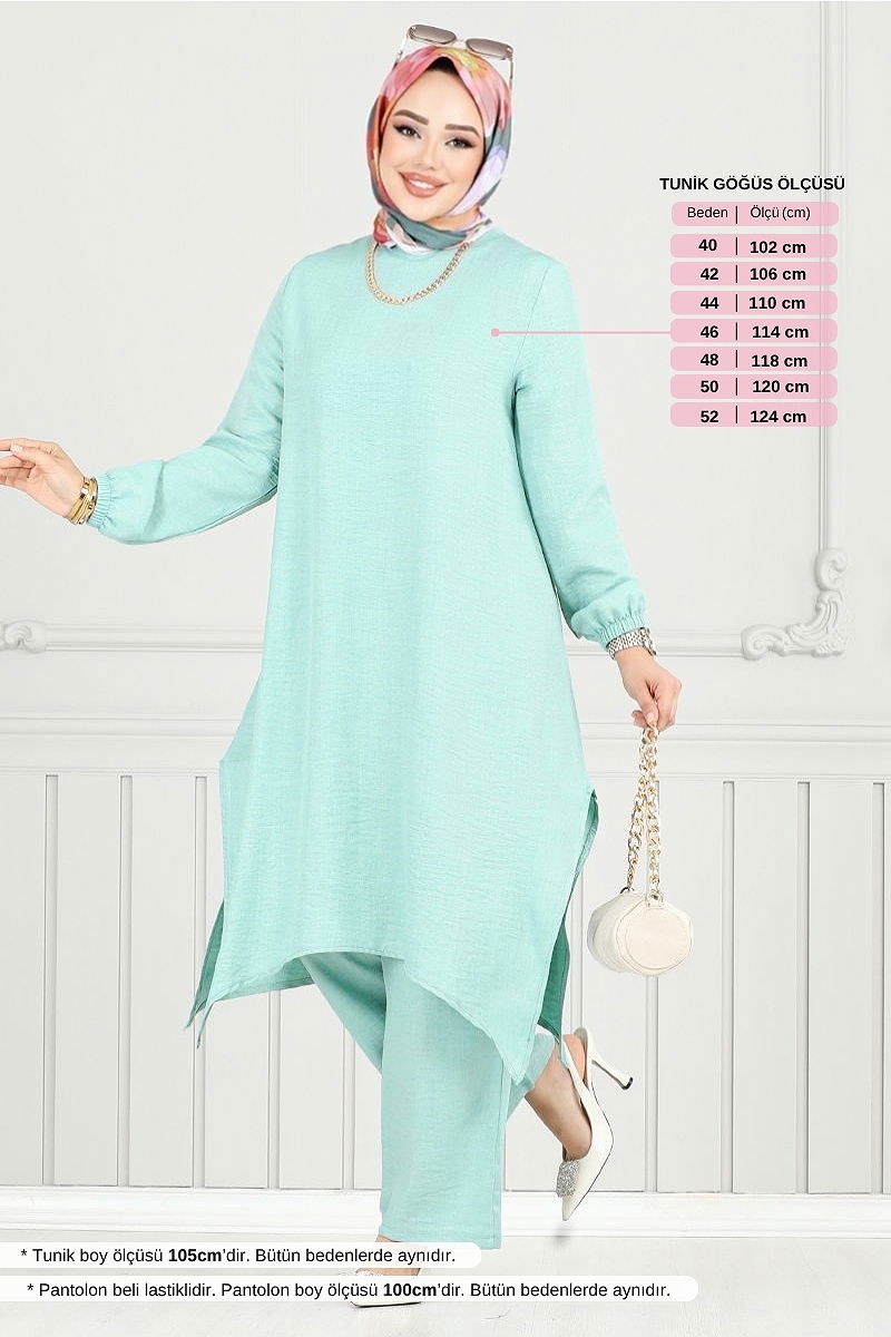 Bisiklet Yakalı Tesettür Takım Açık Mint