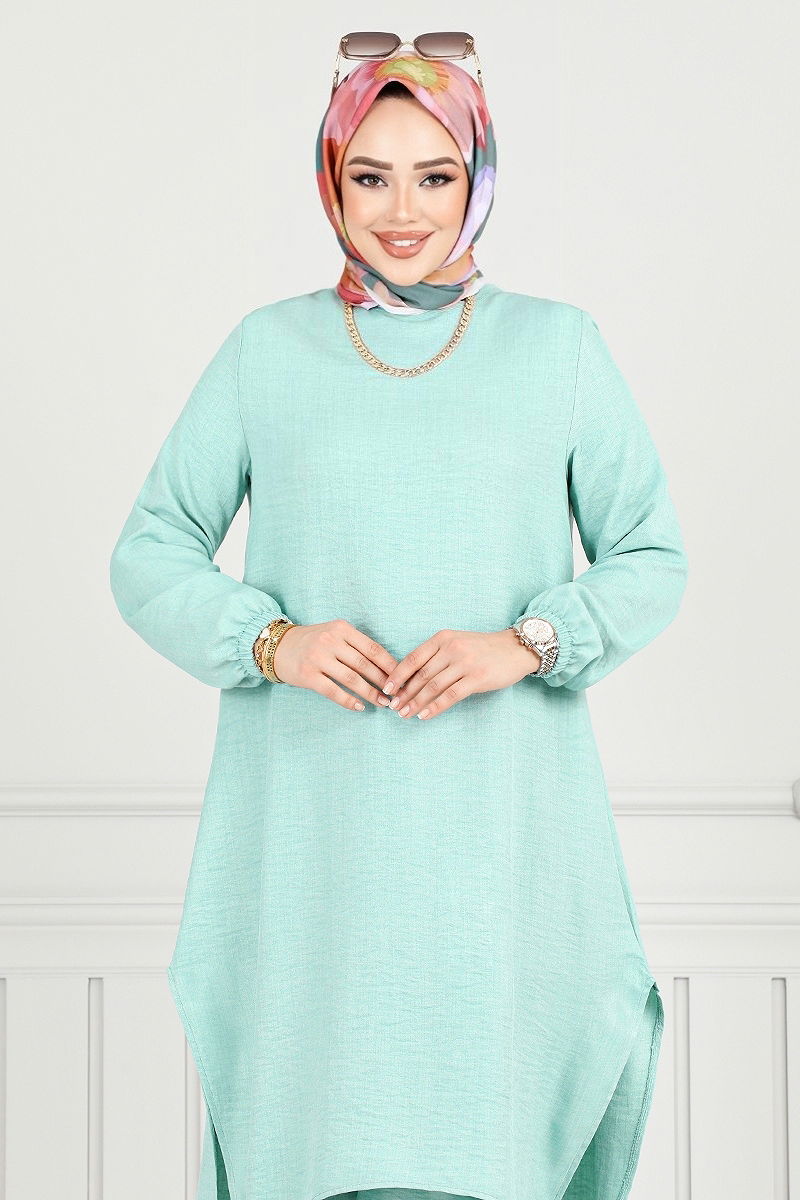 Bisiklet Yakalı Tesettür Takım 386DVL897-M Açık Mint