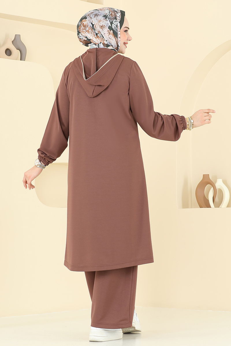 Biye Detay Tesettür Takım 415DVL817 Açık Kahve