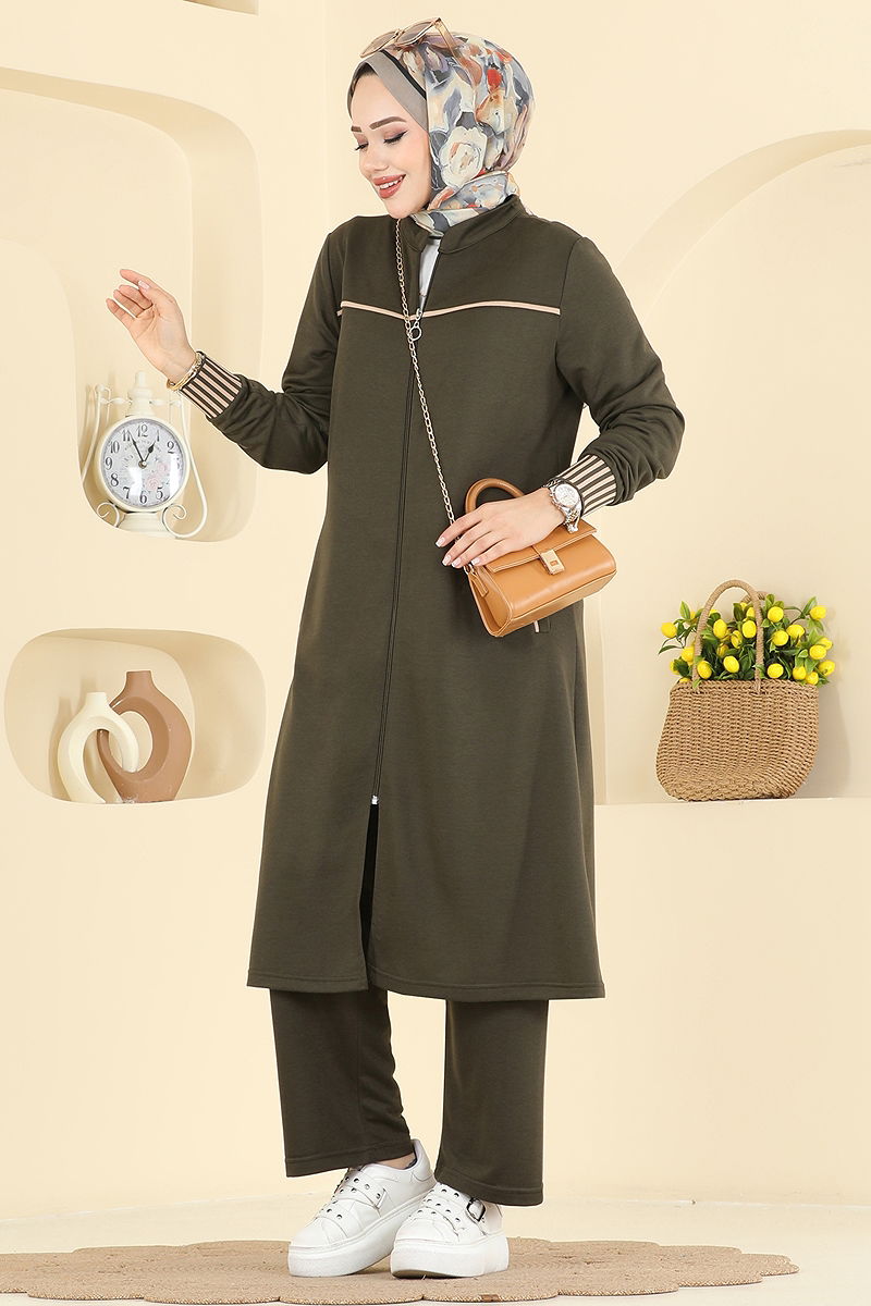 Biye Detaylı İki İplik Takım PL9185 Haki