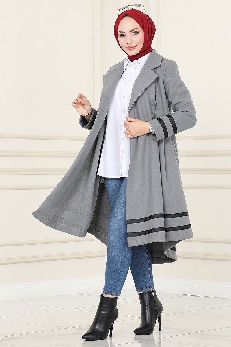 Biye Detaylı İthal Kaşe Kaban Gri Özellikleri