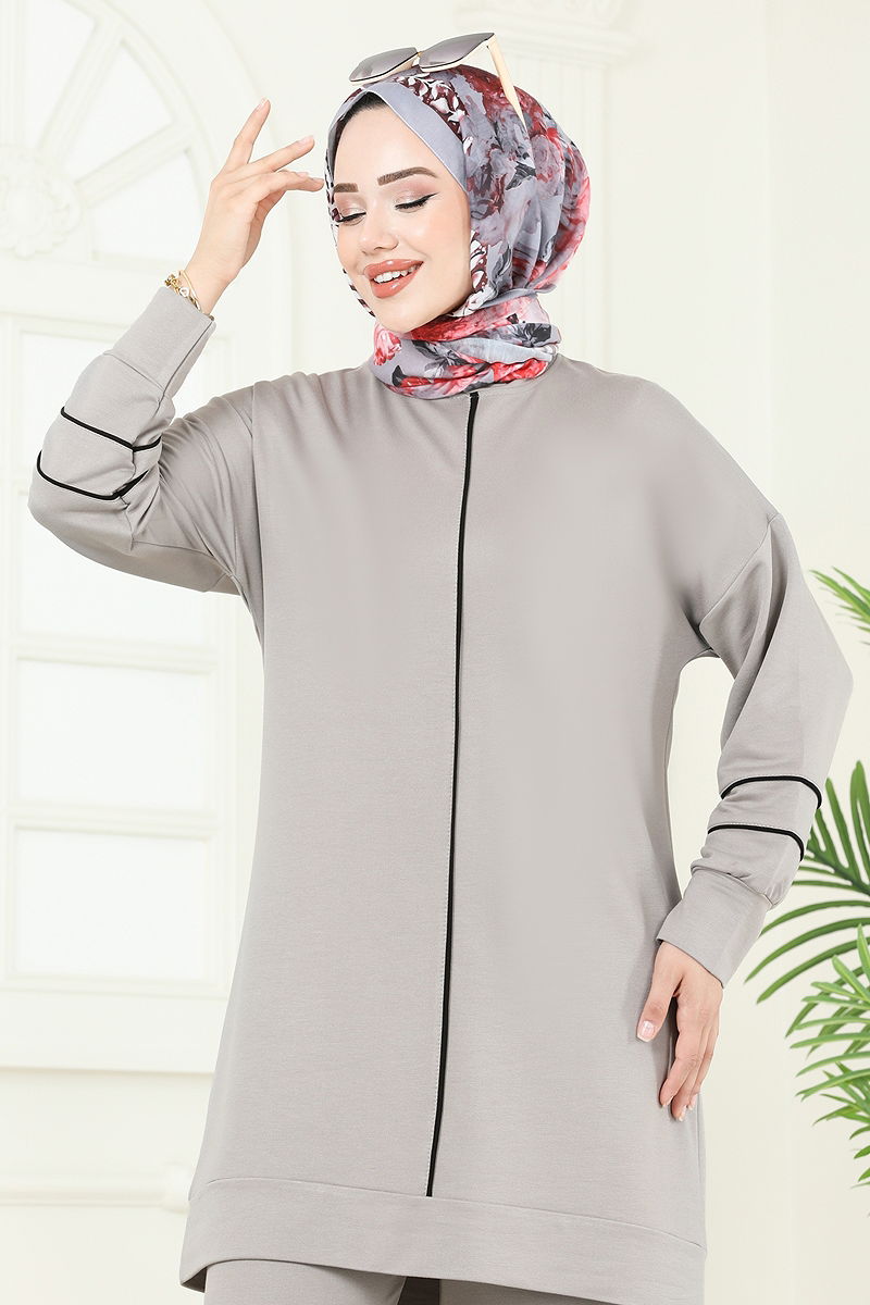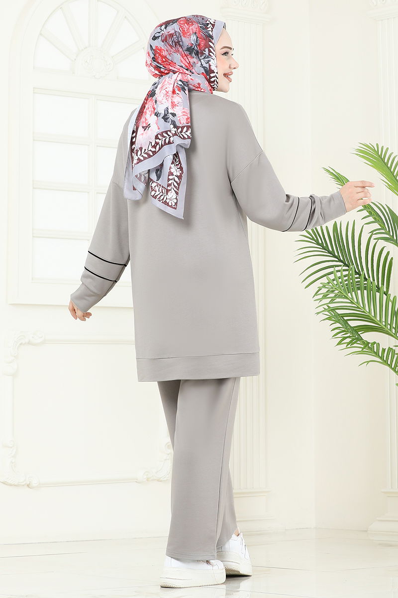 Biye Detaylı Tesettür Takım 2707AYD574 Gri
