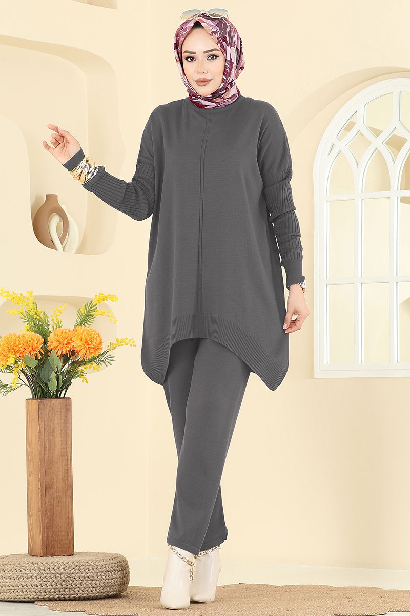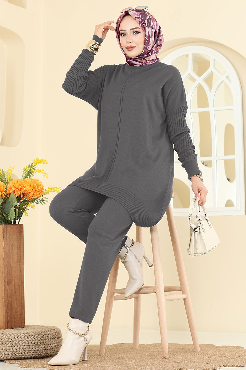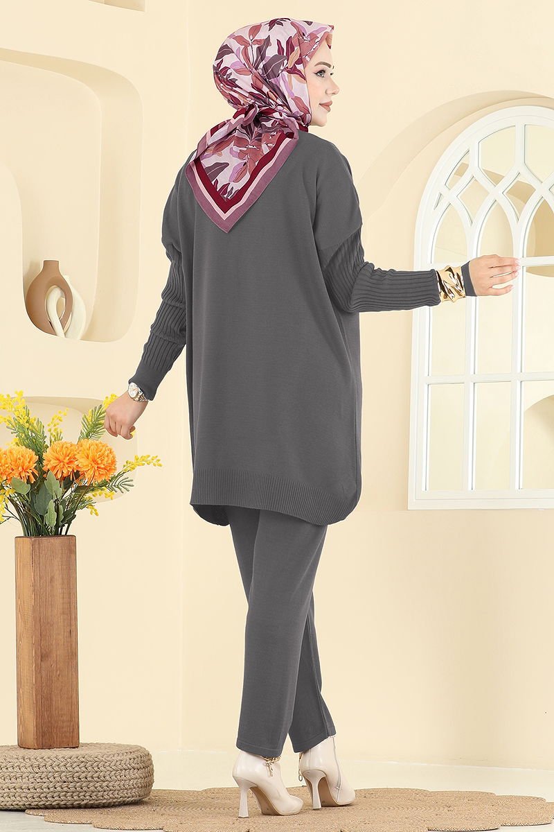 Boğazlı İkili Triko Takım Füme