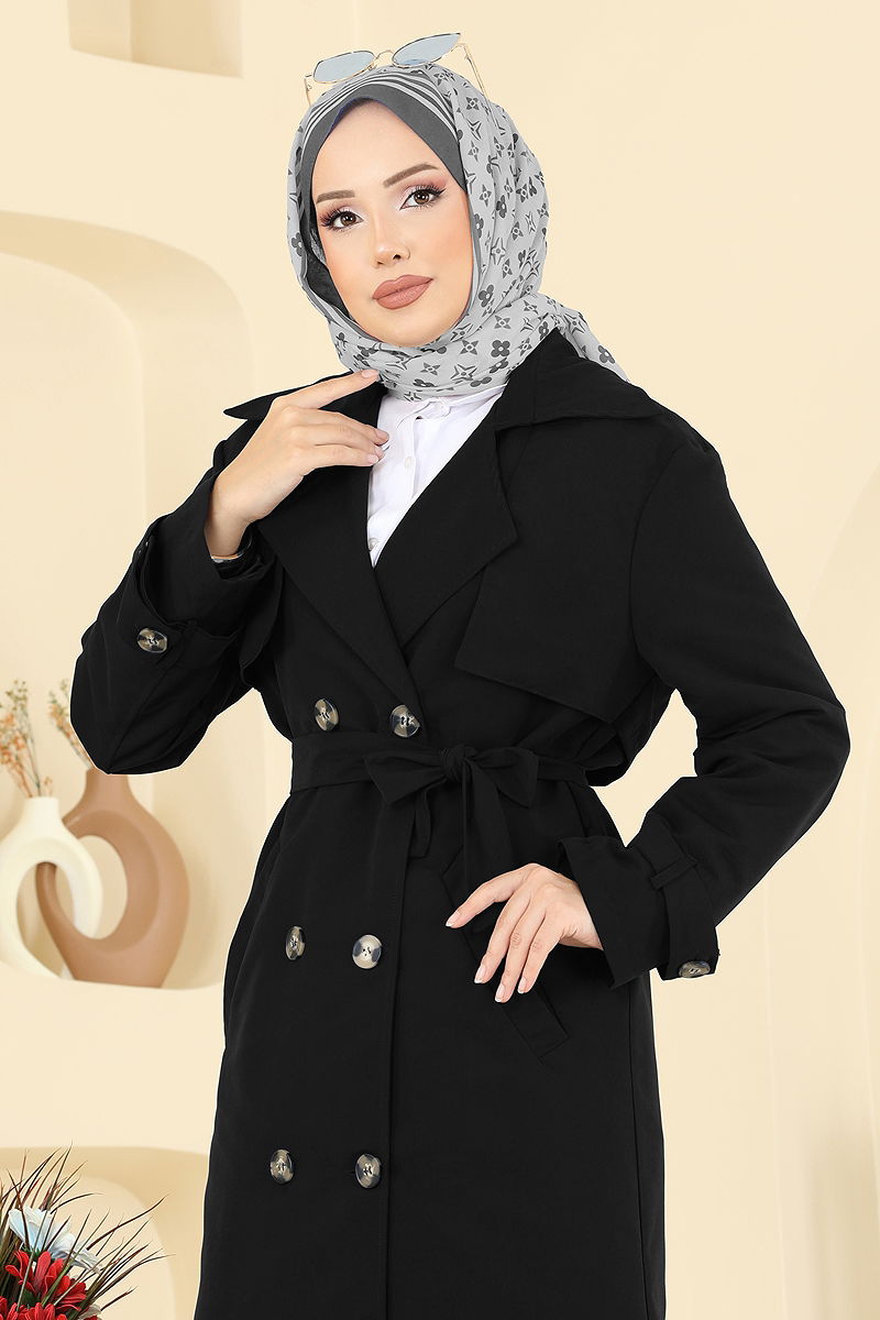 Bolero Detay Kuşaklı Trençkot Siyah