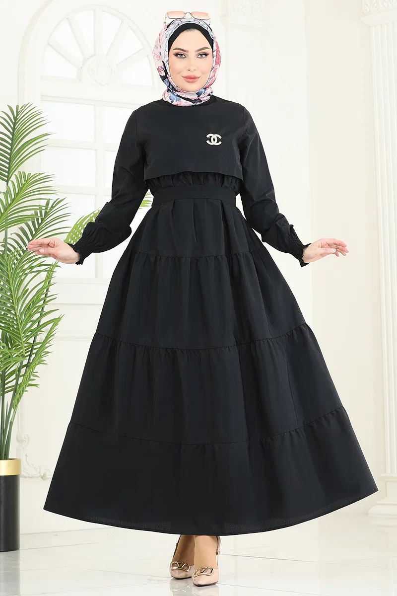 Bolero Detay Terikoton Elbise 3042KTR750 Siyah