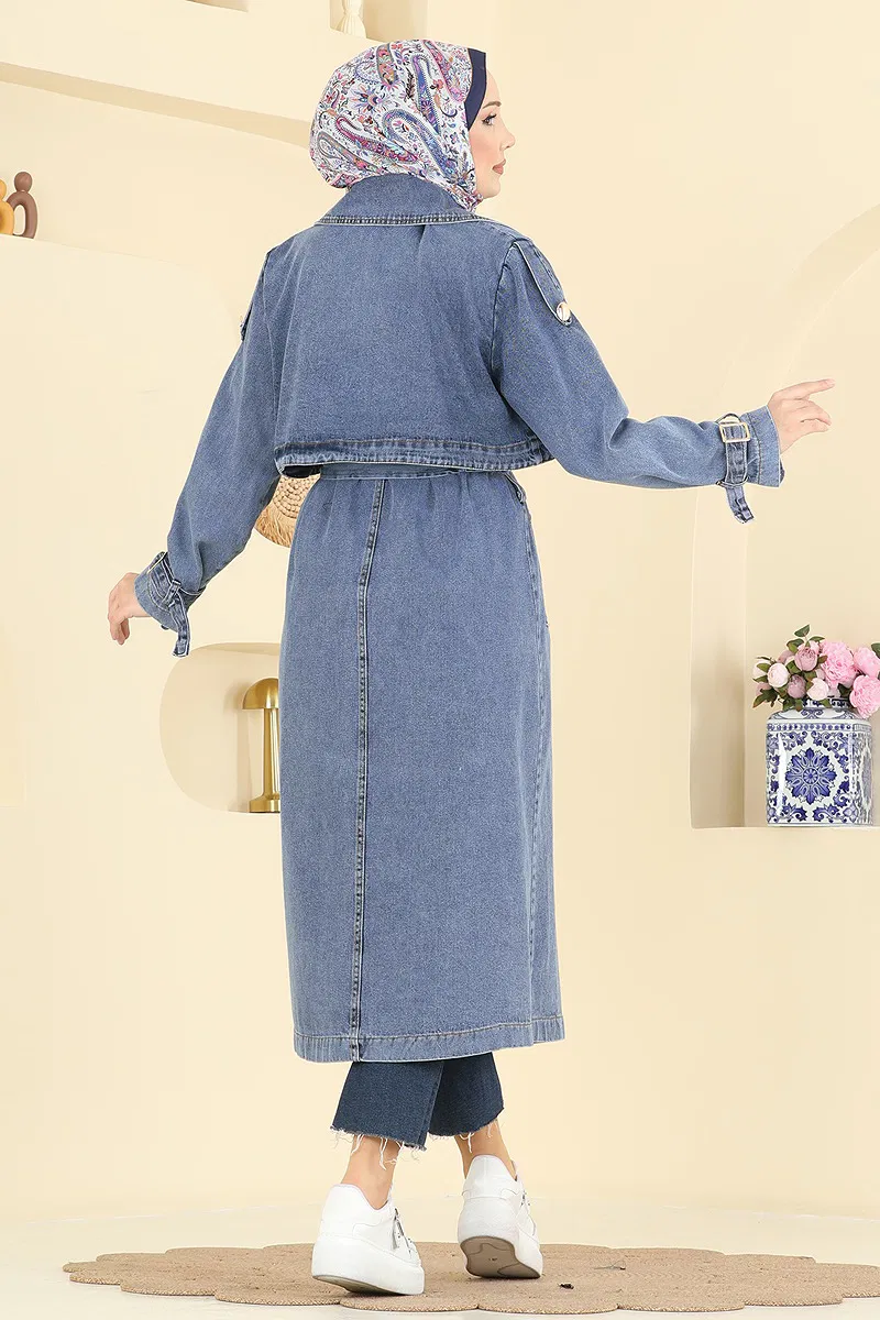 Bolero Detaylı Kot Kap, modern ve şık tasarımıyla dört mevsim boyunca rahatça kullanabileceğiniz bir tesettür ürünüdür. 30 derecede hassas yıkama ile temizlenebilen bu ürün, kruvaze yakası ve yarım düğmeli ön kısmı ile pratik bir kullanım sunar. Ürün astarsızdır ve üzerinde 38 beden örneği bulunmaktadır. Kot kapın belirgin özelliği olan bolero detayı, ürüne dikilmiş ve kemer detayları ile tamamlanmıştır. Kemer, dalgalanmayı önlemek için uçları dikilmiş bir şekilde tasarlanmıştır ve çıkartılabilir özelliktedir. Ayrıca ayarlanabilir manşetli ve cep detaylarına sahiptir.