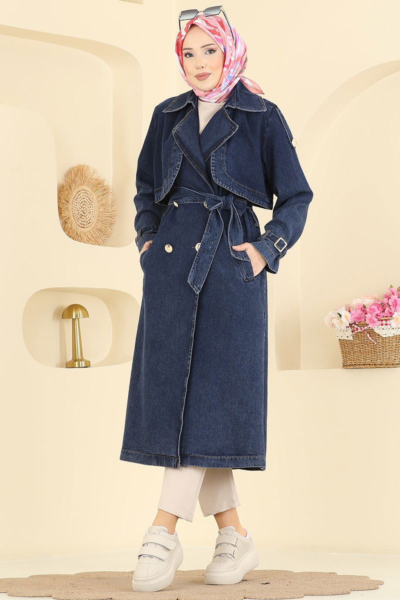 Bolero Detaylı Kot Kap, modern ve şık tasarımıyla dört mevsim boyunca rahatça kullanabileceğiniz bir tesettür ürünüdür. 30 derecede hassas yıkama ile temizlenebilen bu ürün, kruvaze yakası ve yarım düğmeli ön kısmı ile pratik bir kullanım sunar. Ürün astarsızdır ve üzerinde 38 beden örneği bulunmaktadır. Kot kapın belirgin özelliği olan bolero detayı, ürüne dikilmiş ve kemer detayları ile tamamlanmıştır. Kemer, dalgalanmayı önlemek için uçları dikilmiş bir şekilde tasarlanmıştır ve çıkartılabilir özelliktedir. Ayrıca ayarlanabilir manşetli ve cep detaylarına sahiptir.