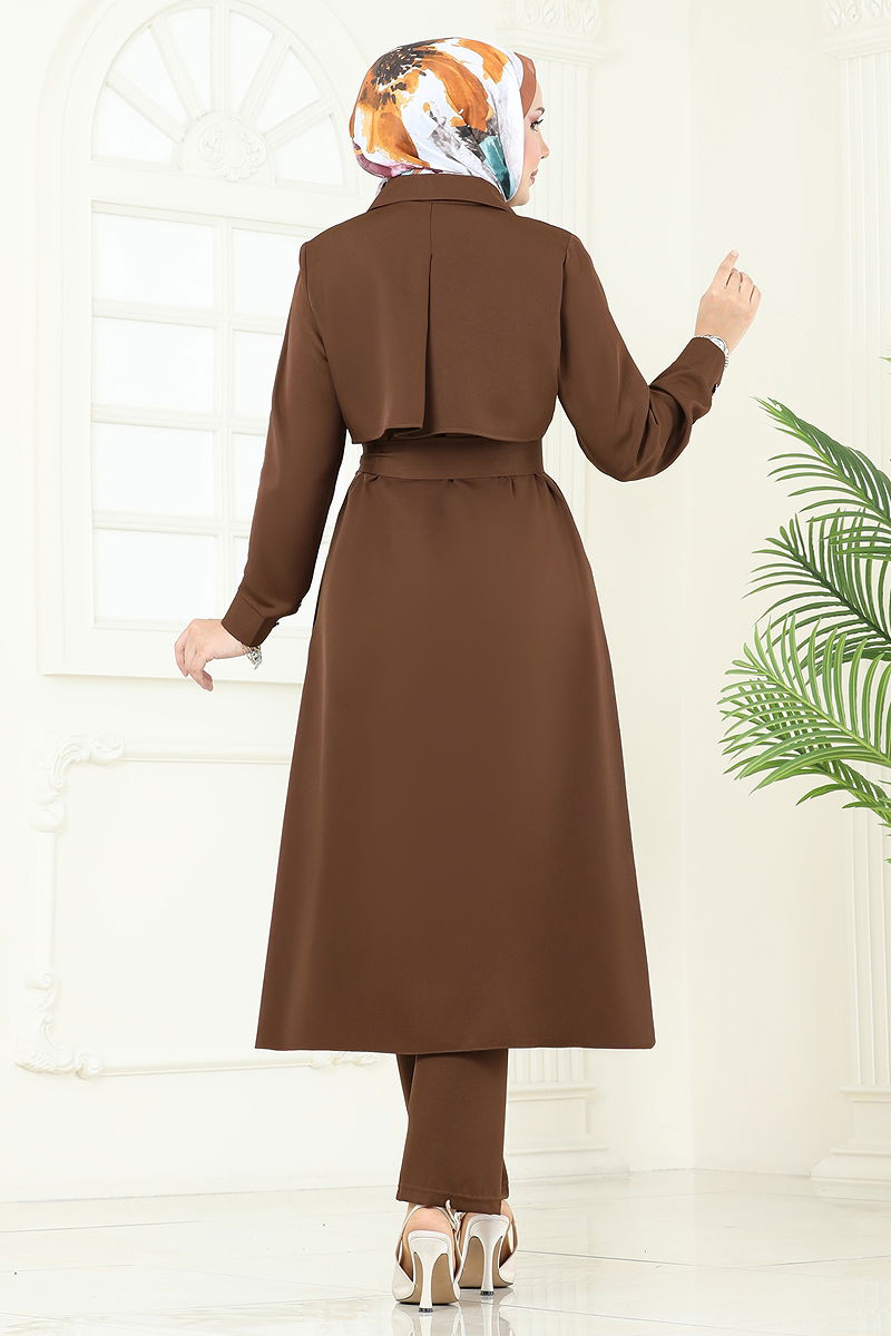 Bolero Detaylı Tesettür Kombin 23023UKB139 Kahve