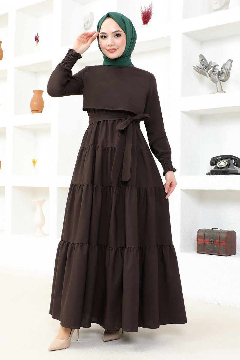Bolerolu Tesettür Elbise ASM2610-M Kahve