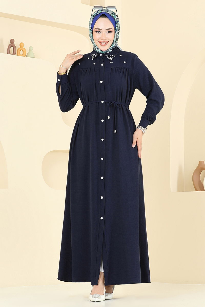 Ürün Özelliği : Yeni sezon tesettür moda ürünüdür. Ürün Gömlek yakadır. Ürün Önden düğmelidir. Astarsızdır. Boncuk detayları çakımdır. Kemer ürüne dahildir, isteğe bağlı kullanılmayabilir. Manşet düğmeleri aktiftir. Konsept fotoğraf çekimlerinden dolayı üründe ton farklılığı olabilir.