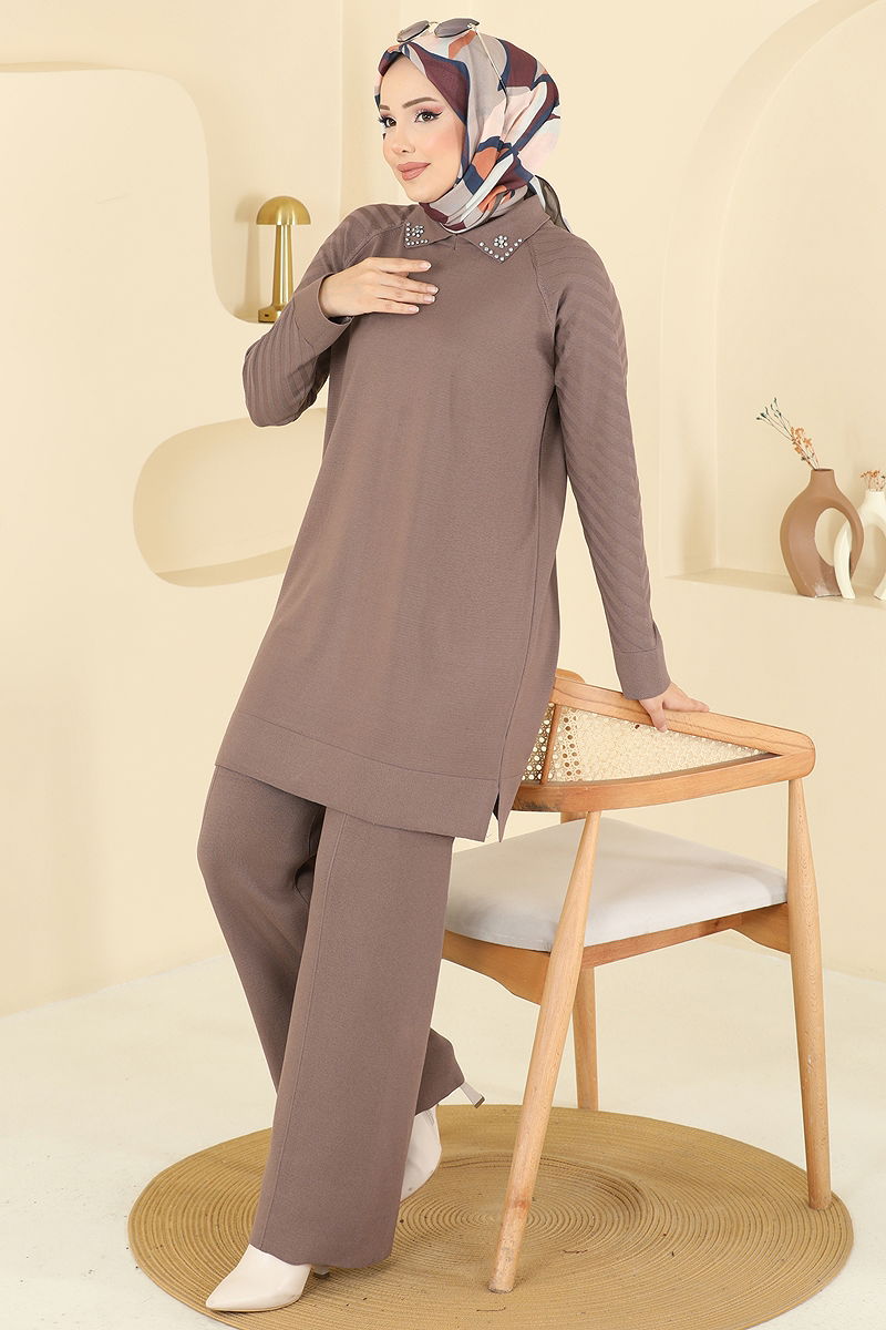 Boncuk Detaylı Merserize Triko Takım Vizyon