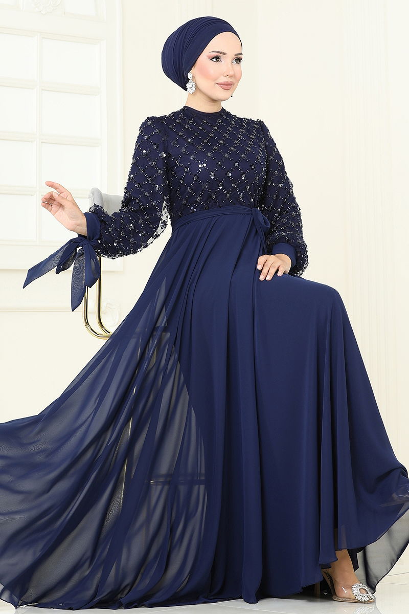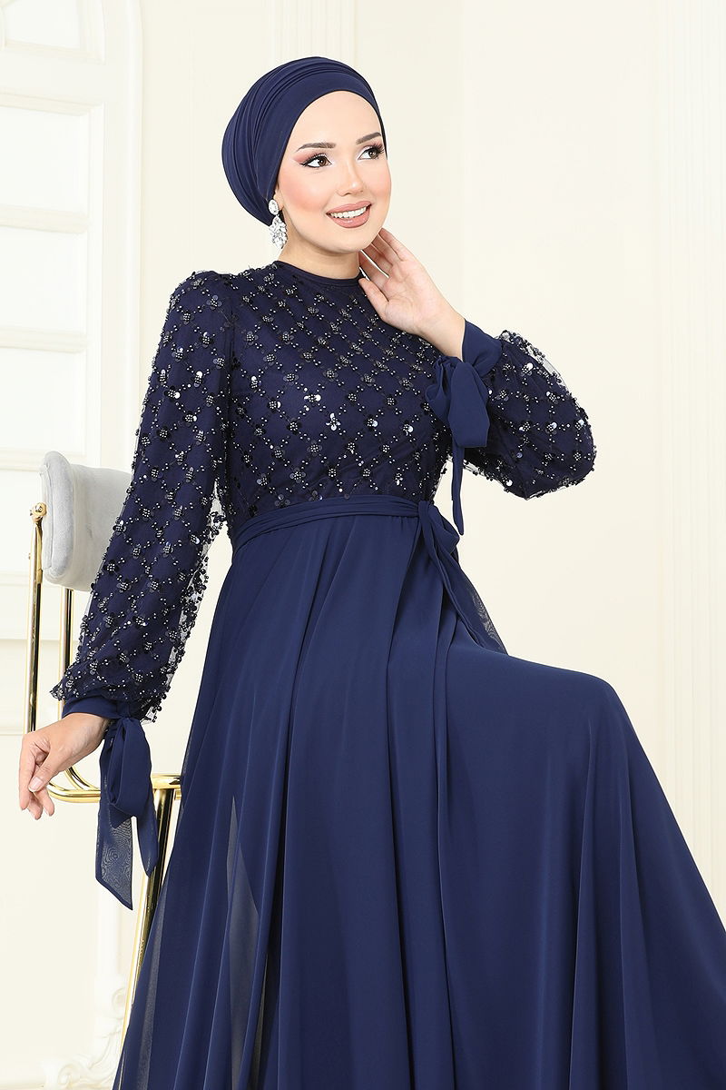 Boncuk Detaylı Şifon Abiye Laci