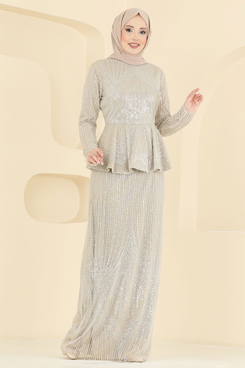 Boncuk Detaylı Tül Abiye 8080YG95 Vizyon