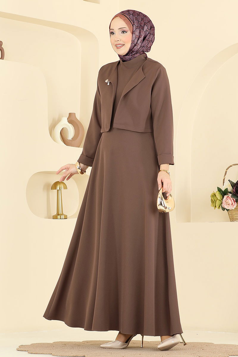 Broş Aksesuarlı Dabıl Takım Açık Kahve