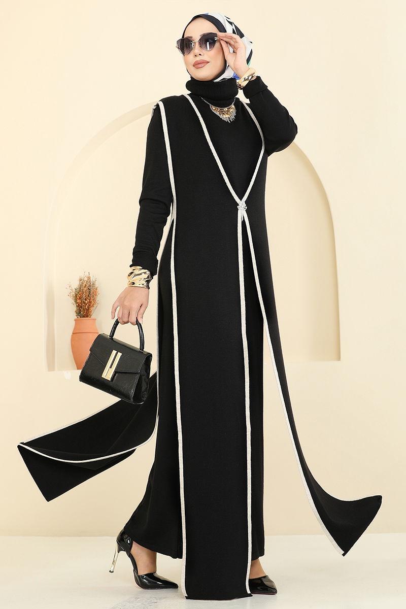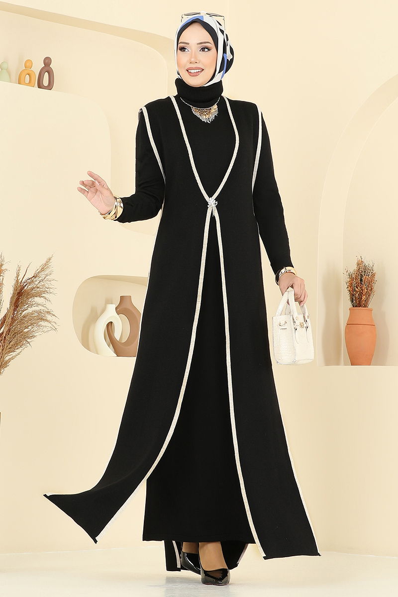 Broş Aksesuarlı İkili Takım Siyah