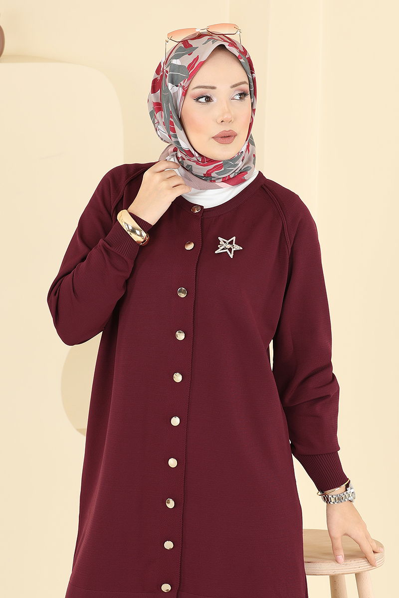 Broş Aksesuarlı Triko Takım 7030UZ662 Bordo