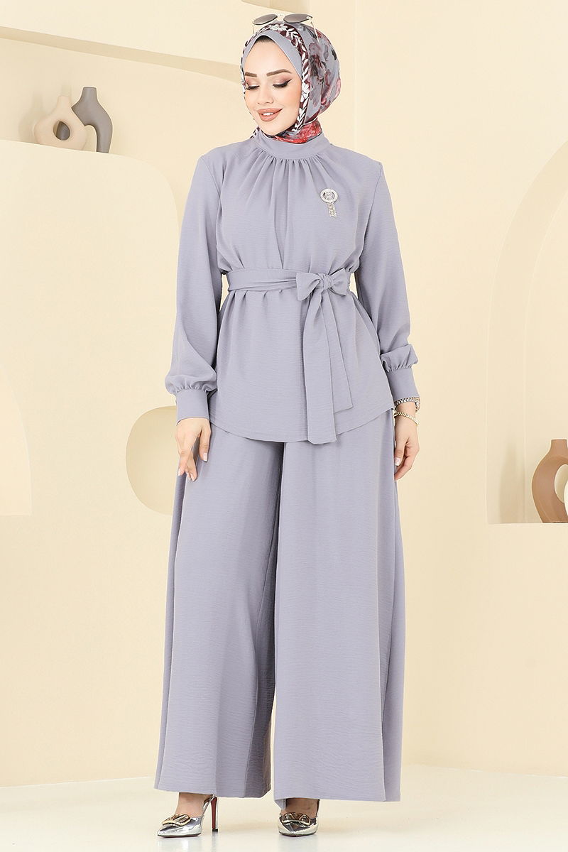 Ürün Özelliği : Yeni sezon tesettür moda ürünüdür. Ürün Hakim yakadır. Ürün Sırttan düğmelidir. Astarsızdır. Kemer ürüne dahildir, isteğe bağlı kullanılmayabilir. Broş ürüne dahildir, isteğe bağlı kullanılmayabilir. Pantolon beli lastiklidir. Manşet düğmeleri aktiftir. Konsept fotoğraf çekimlerinden dolayı üründe ton farklılığı olabilir.