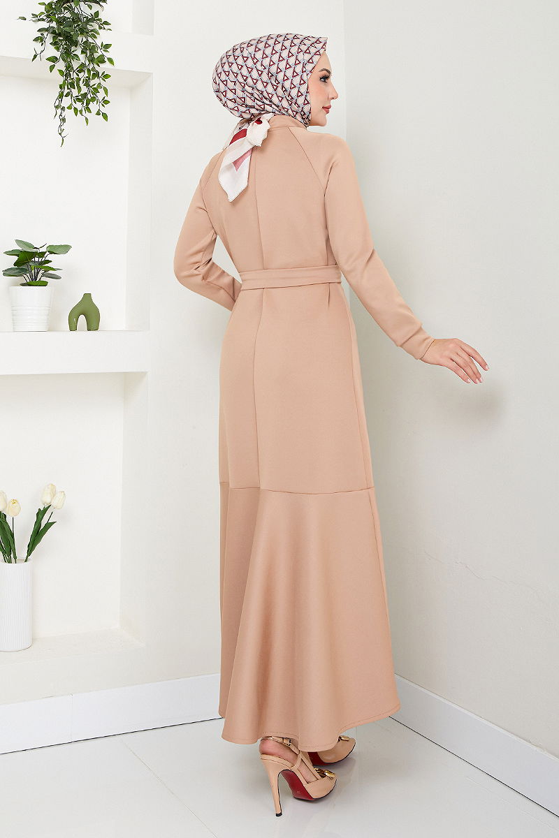 Broş Detaylı Elbise 4706ZNK903-M Latte