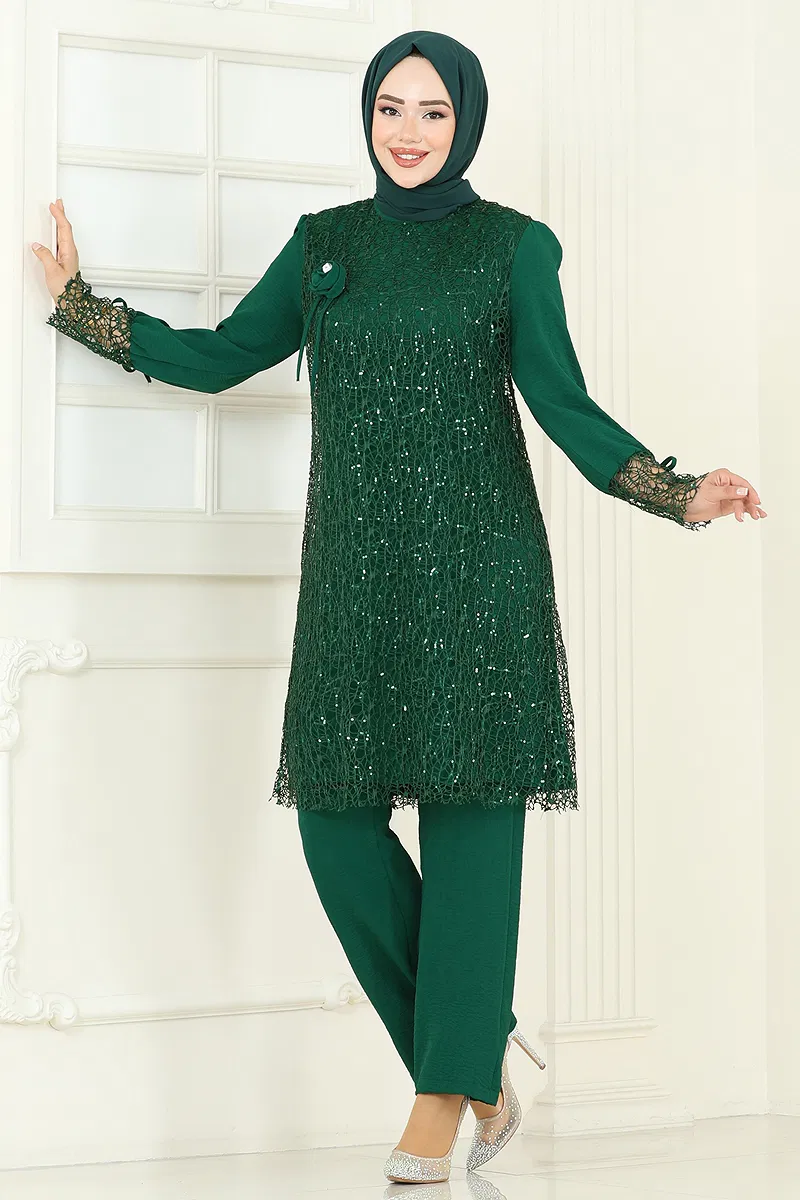 Broşlu File Payet Takım 2547ELC1143 Zümrüt