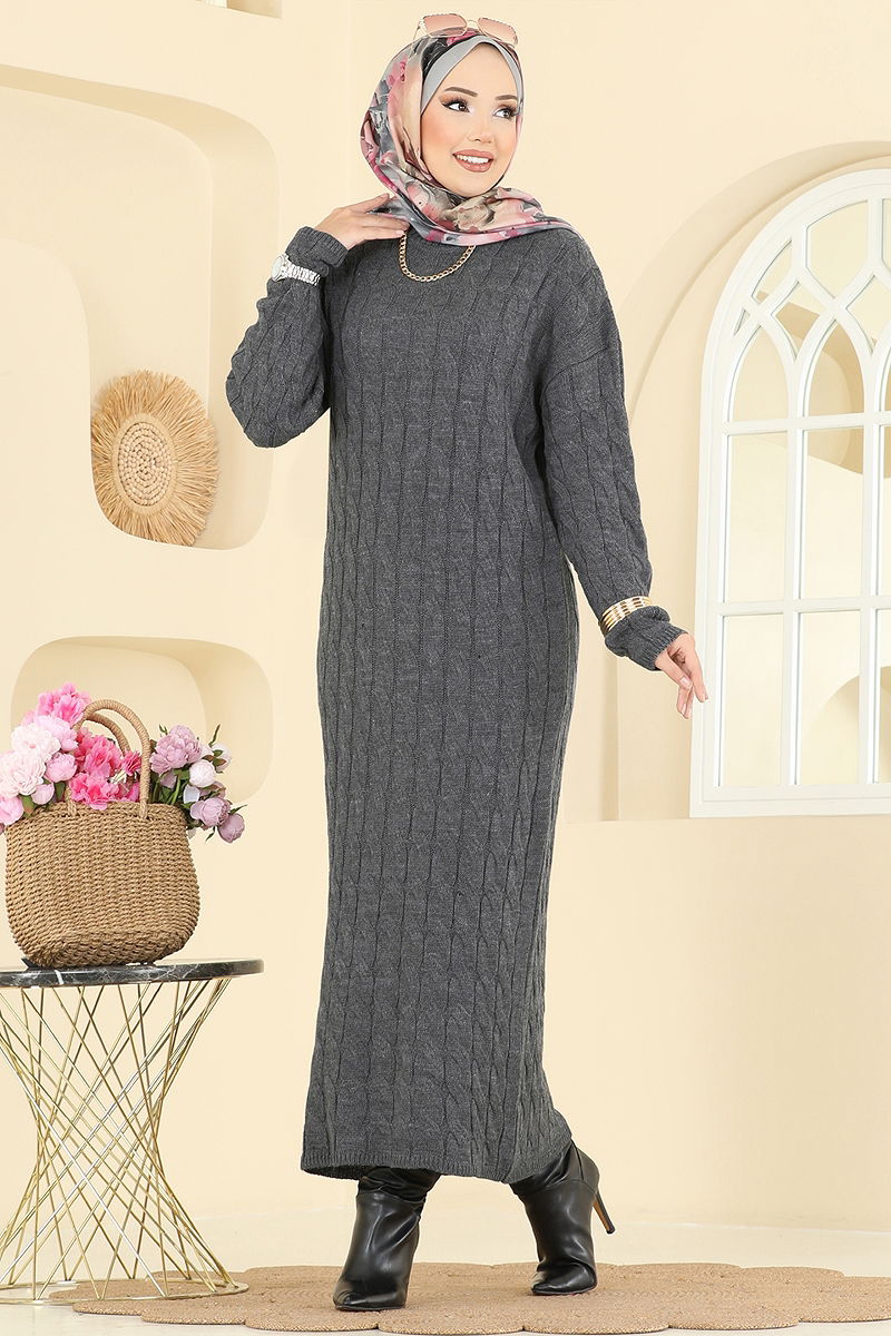 Burgu Desenli Triko Elbise 2752AYD574 Antrasit
