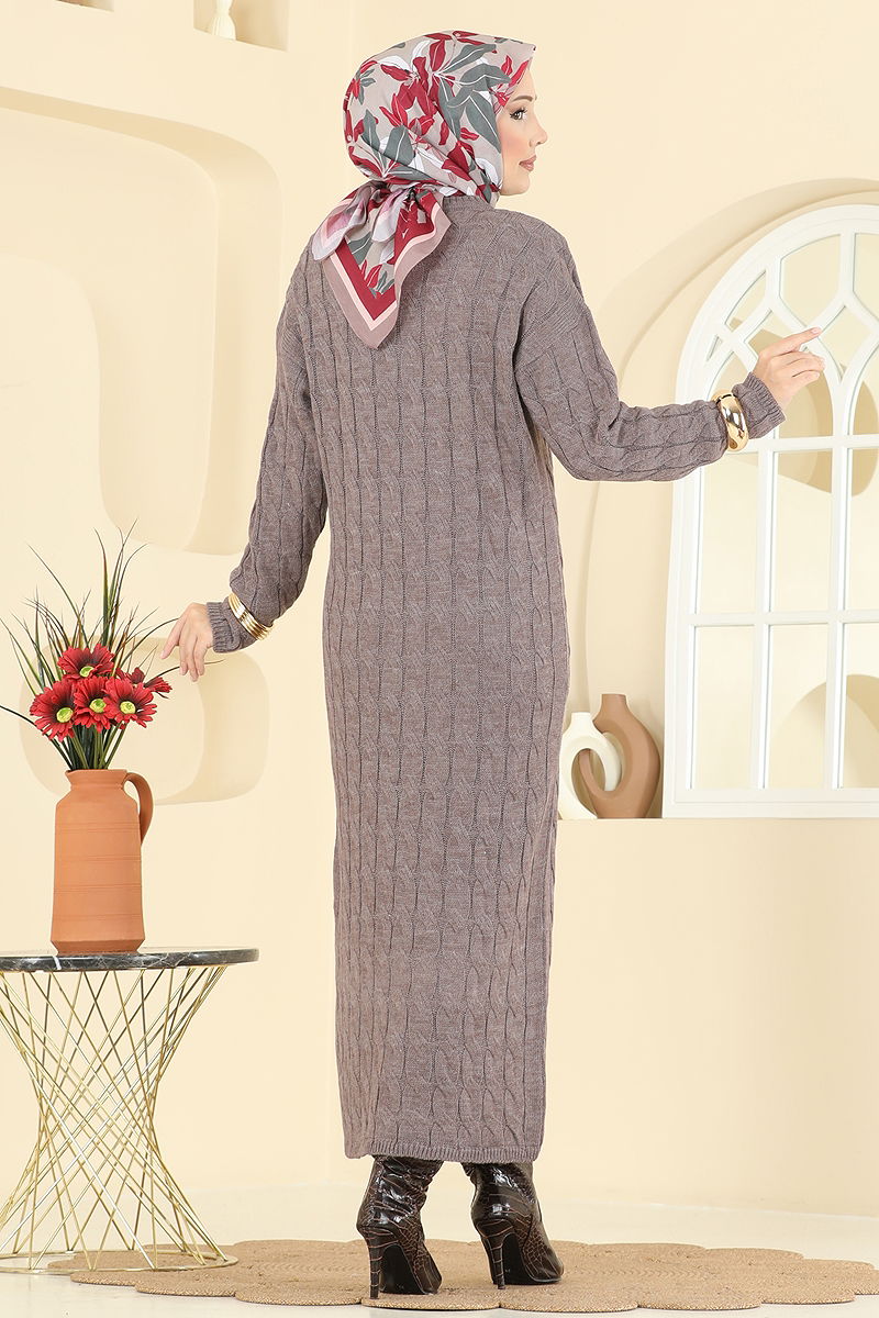 Burgu Desenli Triko Elbise 2752AYD574 Koyu Vizyon
