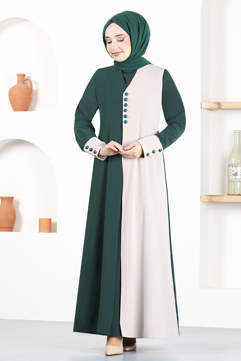 فستان حجاب مفصّل بأزرار زمردي اللون