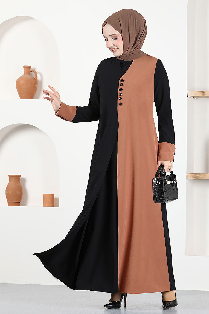 فستان حجاب مفصّل بأزرار فستان حجاب طابة