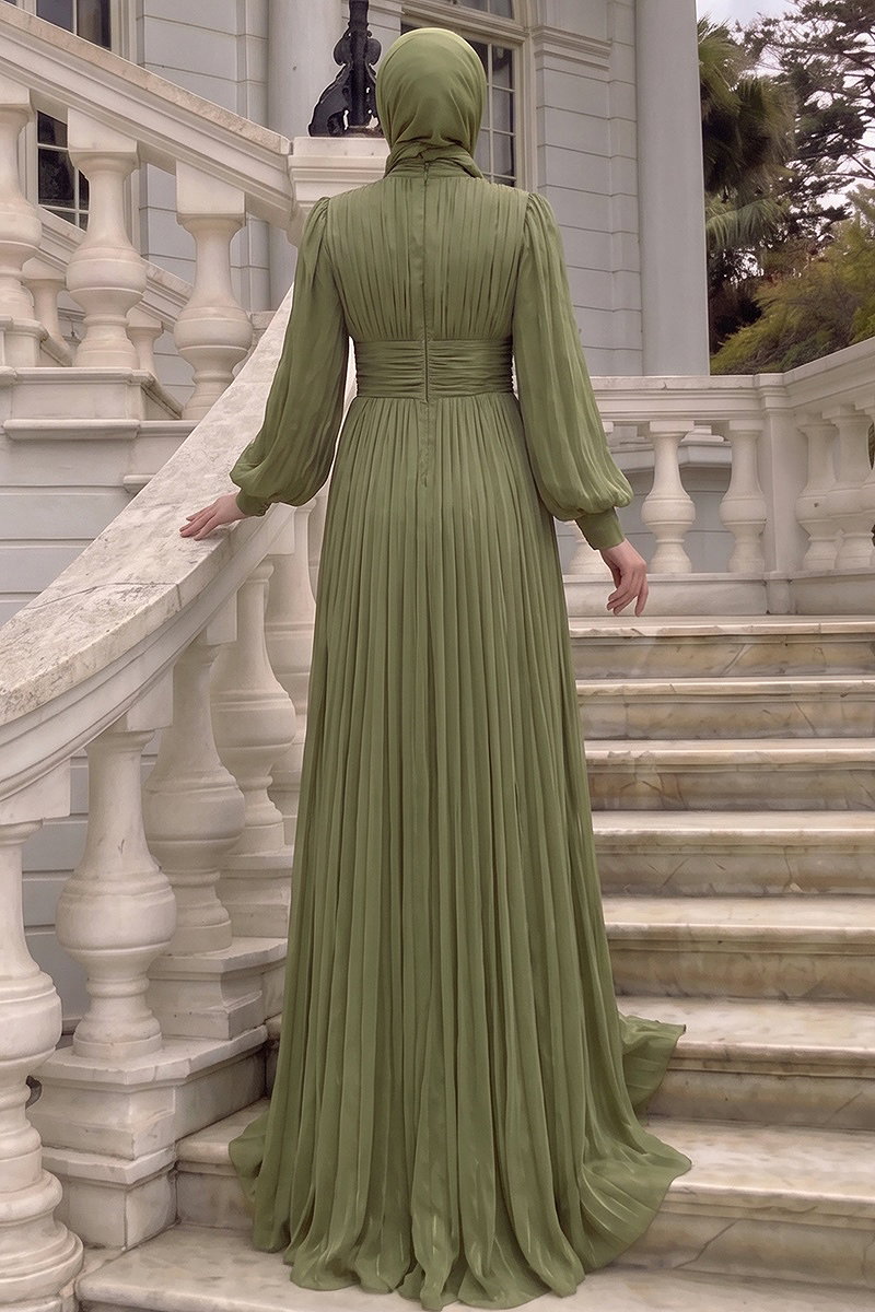 Büzgülü Taş Detaylı Abiye 5626DMNK1166 Haki