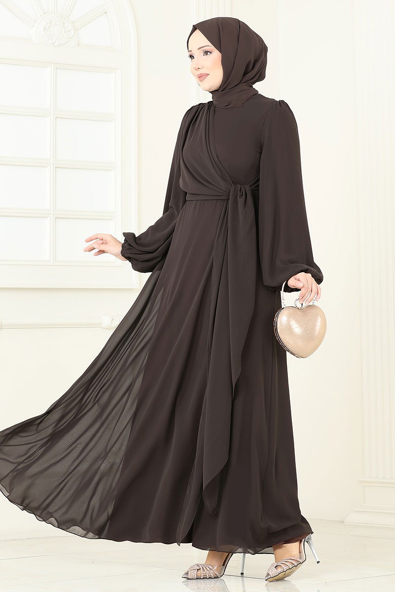 Çapraz Bağlamalı Şifon Elbise Kahve