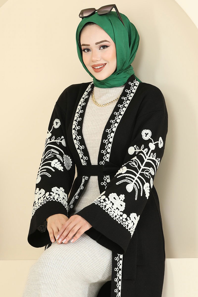 The Embroidery Detail Knit Cardigan is a stylish hijab cardigan enriched with embroidery. Suitable for all seasons, this product is made from knit fabric that is washable at 30 degrees on a delicate cycle. It features a belt at the waist with fixed ends to prevent waving, adding to its elegant appearance. This cardigan, with its eye-catching embroidery details, offers a broad appeal with standard sizes ranging from 36 to 48, making it an essential addition to your wardrobe for both style and practicality.