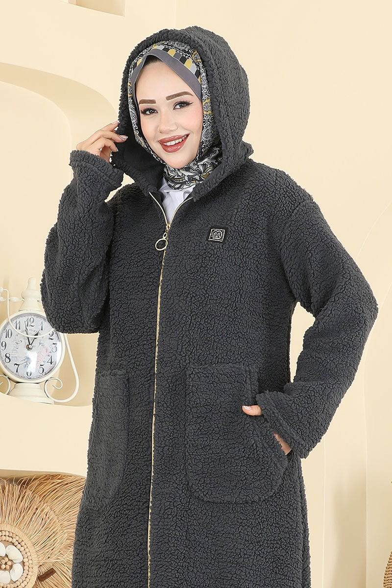 The Pocket Detailed Plush Cardigan is an excellent choice for modest fashion, keeping you warm during autumn and winter. This cardigan can be washed at 30 degrees on a gentle cycle. It features a hoodie and is unlined, offering both comfort and style. The product comes with a front zipper and the hoodie is stitched on, including practical pockets. The displayed model is a size 38, fitting seamlessly into any setting.